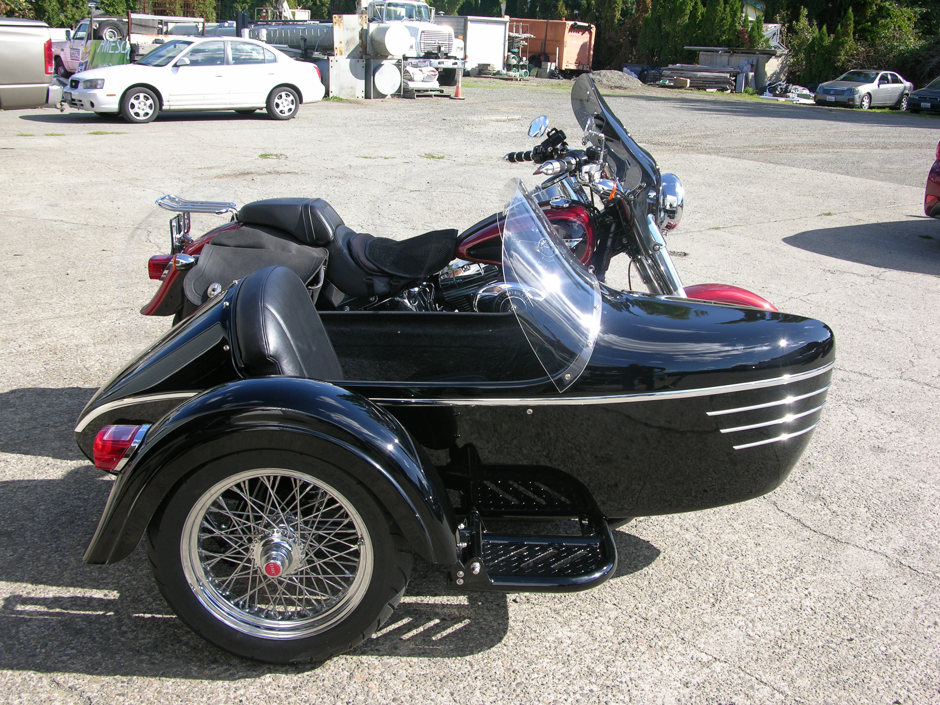 Few dealer stock sidecars. The ones that do usually have low quality imported sidecars that in general have "universal" type mounts that do not tend to work well if at all. These sidecars are small and hard to get in and out of. Most made in the USA sidecars will come with proper bike specific mounts and are built to order only which is why no dealer would have one in stock as it would more then likely have the wrong mounts, be painted the wrong colors or have the wrong options. Many people think that if they buy a sidecar that the front tips forward that it will be easy to get in and out of. In some cases this is true but in general most of these type of sidecars the seat is so low to the floor that it can be very difficult to get in and out of. We have even been know to have to add electric seat lifts. We find that the sidecars that are the easiest to get in and out of have cut down sides, a step built into the frame and the windshield can tip forward. In our model line for your bike this would be the M72C, M72CX, Expedition and a new model we are calling the Adventure which should be on our site in the next week or so. It is nothing more then our Expedition made narrower by 4 inches. Our Tomahawk SE sidecar is fairly easy to get in and out due to the door. For your bike we would build it on the M72CX chassis which would allow for a Harley type fender and it would have a built in step however as the windshield is fixed it can be a bit hard to get in and out of. My first choice for ease of entry would be the Expedition or the narrower Adventure. These sidecars not only have the cut down side and step as well as the windshield that tips forward they also have the most up right seating position once in the sidecar as the floor is lower then the main frame of the sidecar. In general if a person can get in and out of a car they can get in and out of these sidecars. We have also been known to add grab handles and bars that look like roll bars for people to grab onto for getting in and out. They can also reach across to the bikes handle bar for some thing to pull on. If you can let us know more about the physical limitations my self and others on this forum may be able to give you better input. I have attached a photo of our Expedition sidecar on a softtail. I also attached two photo's of Tomahawk sidecars, the first is not the SE but it was the only photo I had on the M72CX chassis with the Harley type fender. The last photo is of the Tomahawk SE where you can see the door.