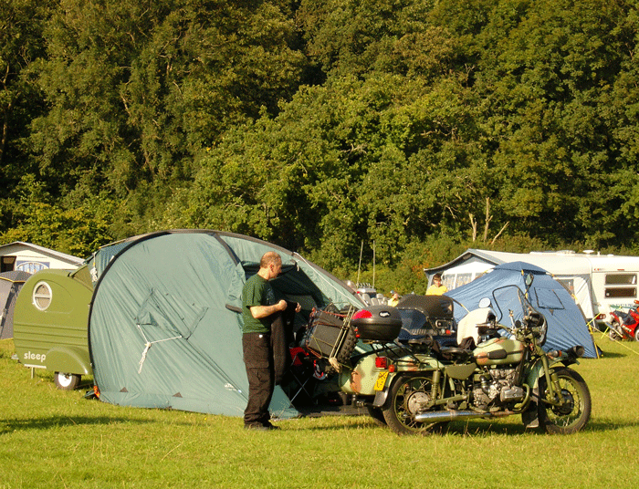This weekend, I went to the vintage motorcycle festival at the Barber Museum and motorsports complex and took my little teardrop camper on its first major outing (800 miles and four nights), which was actually its second outing. The week previously, I had had a Texas Sidecar Standard attached to my Suzuki Bandit 1200S. The trailer pulled like a breeze, presenting no problems. It was great not to have to pitch a tent or take one down. When tent camping, I usually have to allow myself an hour to break camp. With the teardrop, ten minutes or less. However, my particular camper is strictly a one person accommodation. I soon discovered another advantage to pulling the trailer. On the way home, I stopped for lunch at New Albany, AL. When coming out of the restaurant, I took time to check my back tire because I knew it was marginal. Well, it was worse than marginal, it actually had steel cables showing. I decided against going any further until the tire could be replaced. Unfortunately, it was Sunday, which meant another night on the road. Since I was puilling a camper, instead of looking for an RV park, I just pulled into the nearesr Wal Mart parking lot. I don't think one could get by with this if tent camping. The camper was an easy build and an easy tow. If you've been thinking about building one, go for it.