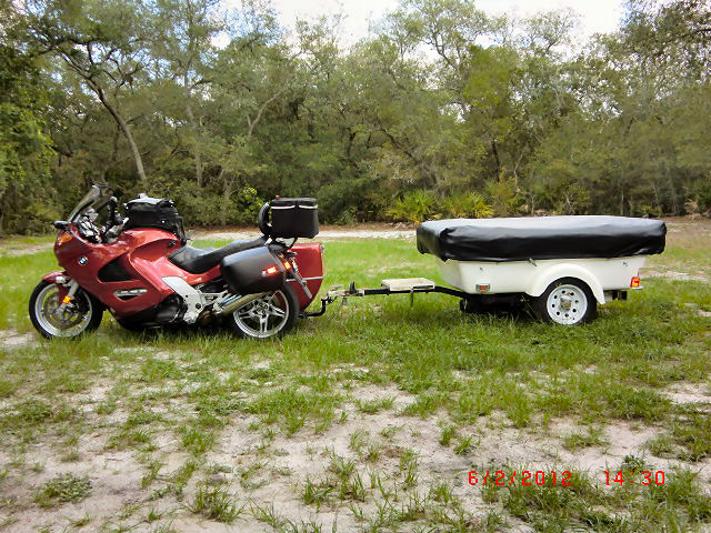 I pull a loaded Bunkhouse behind a Gl1500/ California Friendship 3. Usually solo but sometimes with a passenger. So far, I've only pulled it a couple test rides, one about 20 miles and the second around 50. No problems thus far. It handles well, I don't have any weird pulling or control issues. Even practised a few hard stoppies from 60 mph.