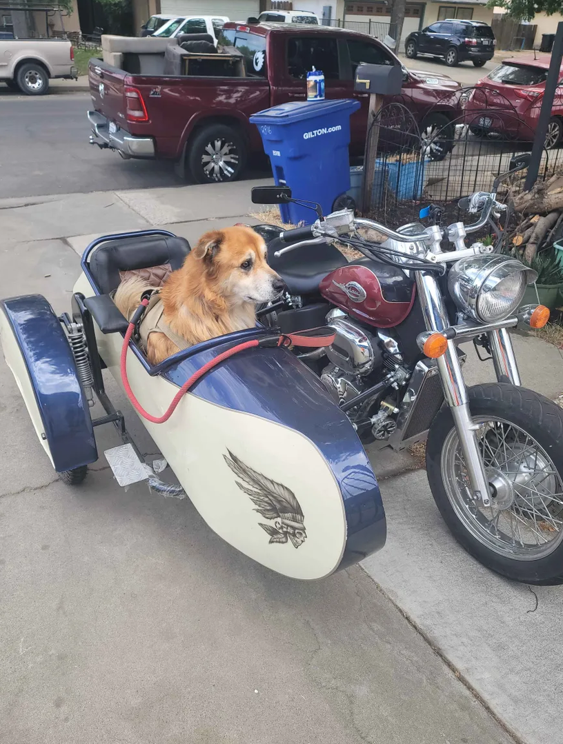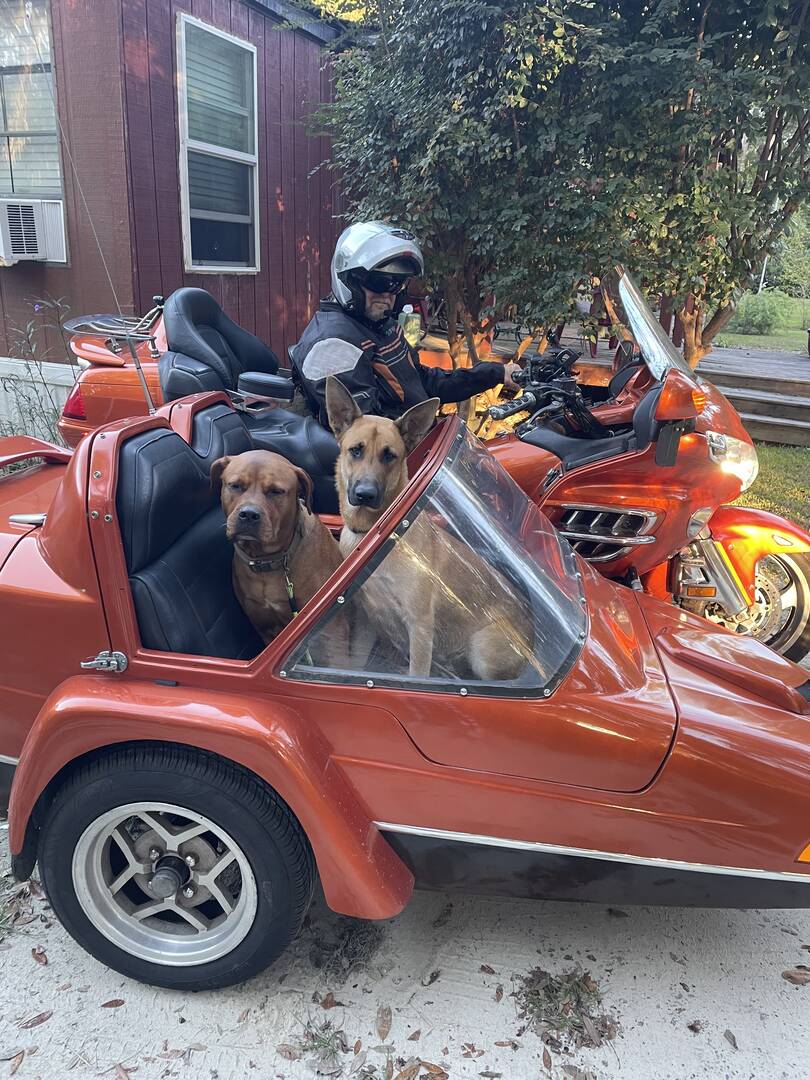 Wanted to bring this back around as it’s so easy to forget about it. We lost 2 of our little guys since the rally in Iuka. We had rescued a pup before the rally and I posted a pic of her on the first page, we picked up another pup that is now 1 year old, here’s Mia and Sarge on one of their rides that mostly ends up at DQ for a pup cup