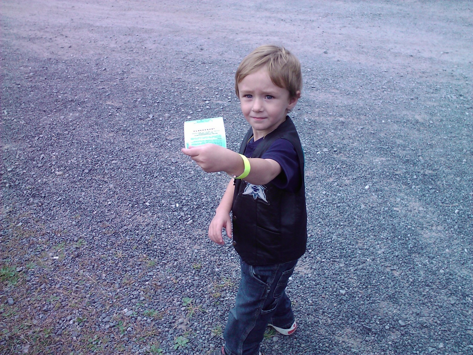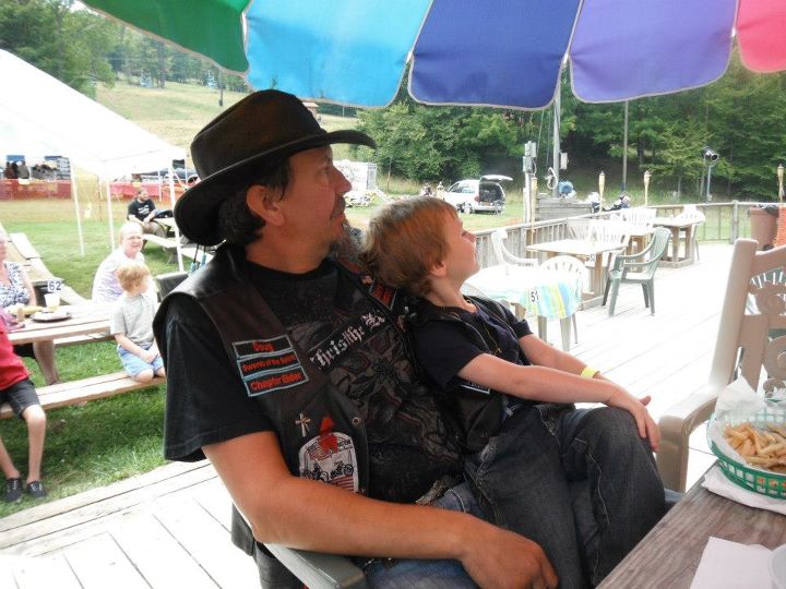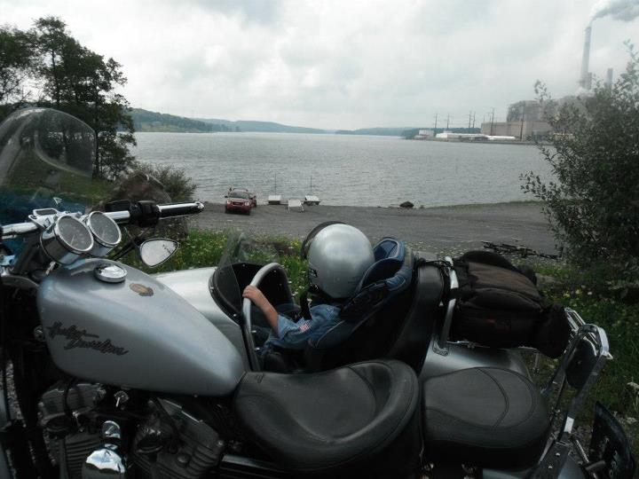 He's my grandson, he started riding July 2011 , he was 2 years and 4 months old. we have around 6,000 miles on the rig since then and he will take that over the car anyday. counting this ride he has bben in the rain 3 times now and will ask to ride in the rain. He asks to go to the Harley shop , the Honda shop, the Yamaha shop , he knows where they all are and which one we are pulling up to. He made me ride the ski lift to the top of the mountain at this event ,Timberline Ski Resort Bike weekend in Davis WV