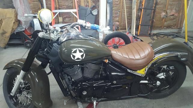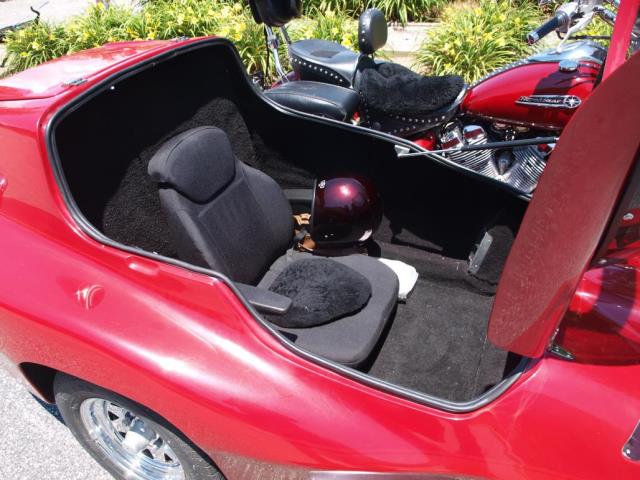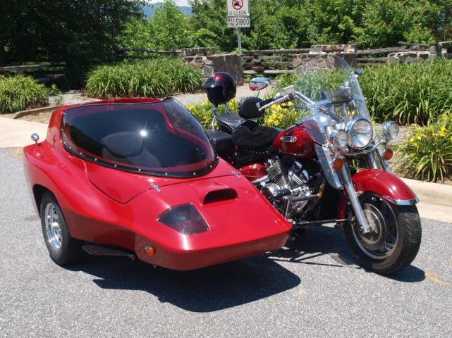 frame, all new bearings and races, repaired the electric motor on the actuator and painted it. Had to do a lot of body work on the sidecar, changed the tail light to a LED, put a turn signal on the fender, and install a hood scoop for better air in the car. Painted it with base coat clear coat. Installed boat carpeting for upholstry and installed a seat form Tractor Supply. Had to take the hatch cover to Hannigan Sidecar in Murray, KY. to have a new windshield installed. Got my bike and sidecar mounts from Jay at DMC (Really nice mounts Jay). Set it up on what I had read on this and other sites. I guess I got it right because it handles really nice.