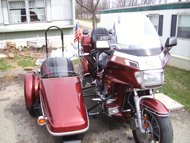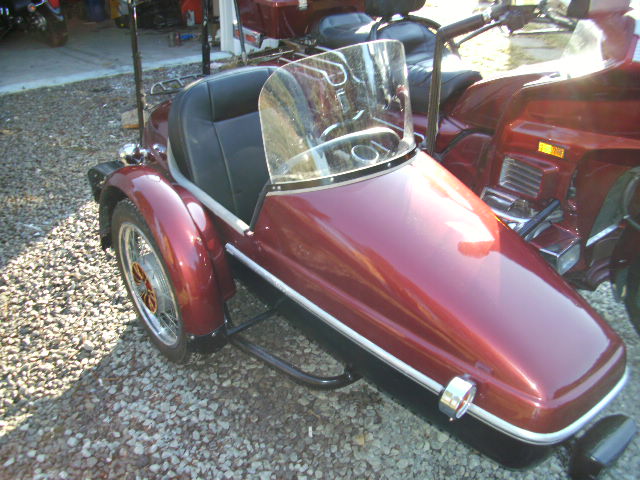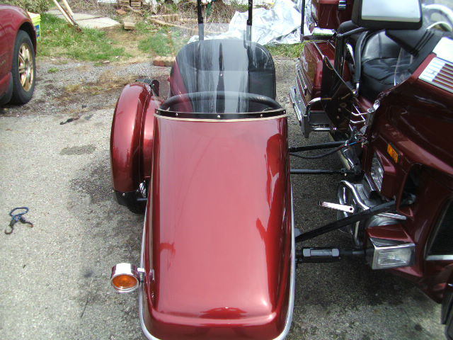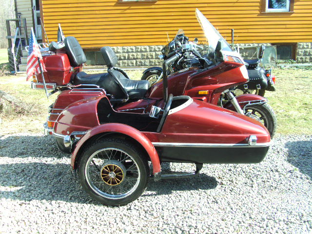 finished with a complete repaint of my 1987 1200 aspencade with sidecar striped all old paint off both and fix and smooth out all bad areas paint them with a 94 Porsche 911 color with 100 cc of a white gold powder flake per qt. had about 300 hrs. in the whole job, don't have any before because off computer crash but bike was 2 tone wineberry and side car was white