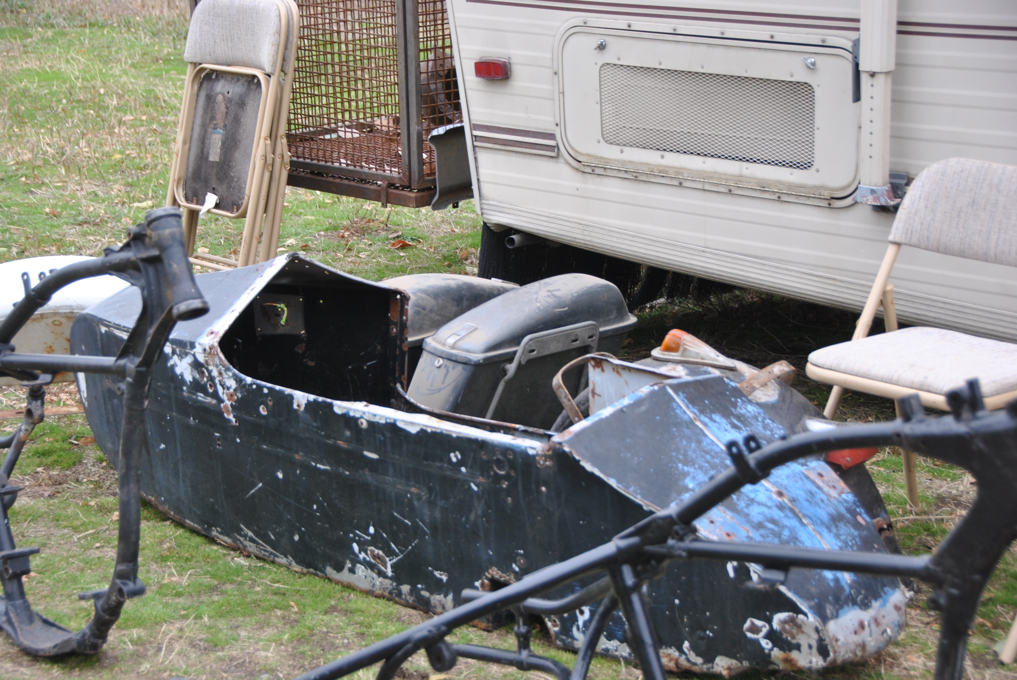 For some reason I can't see your photos and when I click the links I get a message saying the site isn't working. At any rate, I tried to buy a classic sidecar just for the purpose of yard art at the swap meet back in October. The owner was way too proud of it for my purposes...