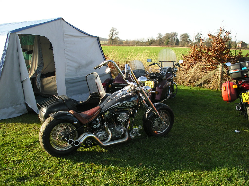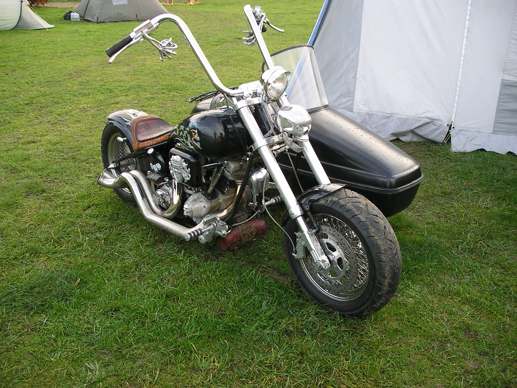 at the weekend i attended a rally and was to travel together with a friend & his wife, so on the friday morning i rang to see what time we were setting off only to hear problems with bike you set of i will see you there, brian the friend declined the offer of my spare hack or help saying he would sort the problem. so off i went got pitched fed & watered no sign of brian tried ringing to no avail, at about 12.30am i got a call, we are here where are you!, i was in bed!. he had worked all day to take the chair of his flt harley & graft it onto his harley custom chop having to make all the fittings from scratch & to set it up, then to travel through the night in the pouring rain. now thats dedication. & next day he won the best bike trophy.