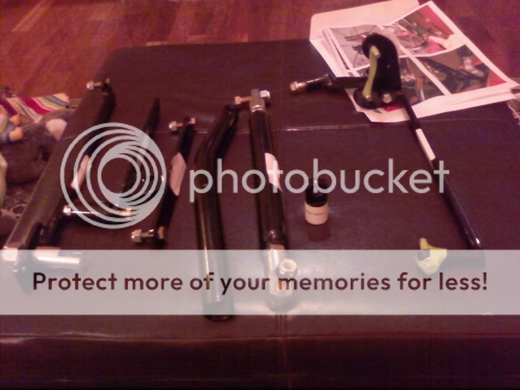 Here are the bike mount points and struts that go b/t the mount points on the bike and the mount points on the sidecar. The instructions are in the upper RH corner. Just pictures. NO WORDS whatsoever. That made it interesting. I had to drill some holes and take some stuff apart, but figuring that out was a process of elimination, swearing, and asking myself, this part must go somewhere ... if I was designing the mount, what would I have done. Ugh ... just a few words could have saved TONS of time.