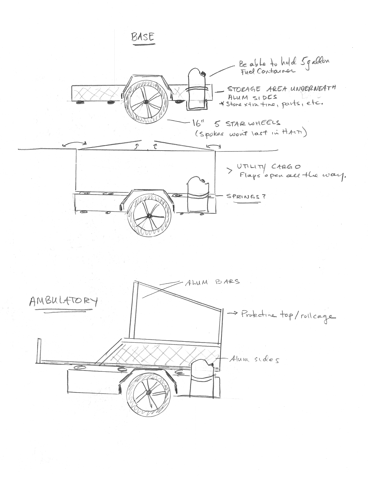 3. Sidecars needed>> to use for mobile clinic; use for mobile emergency water filtration; ambulance; portable educational center.