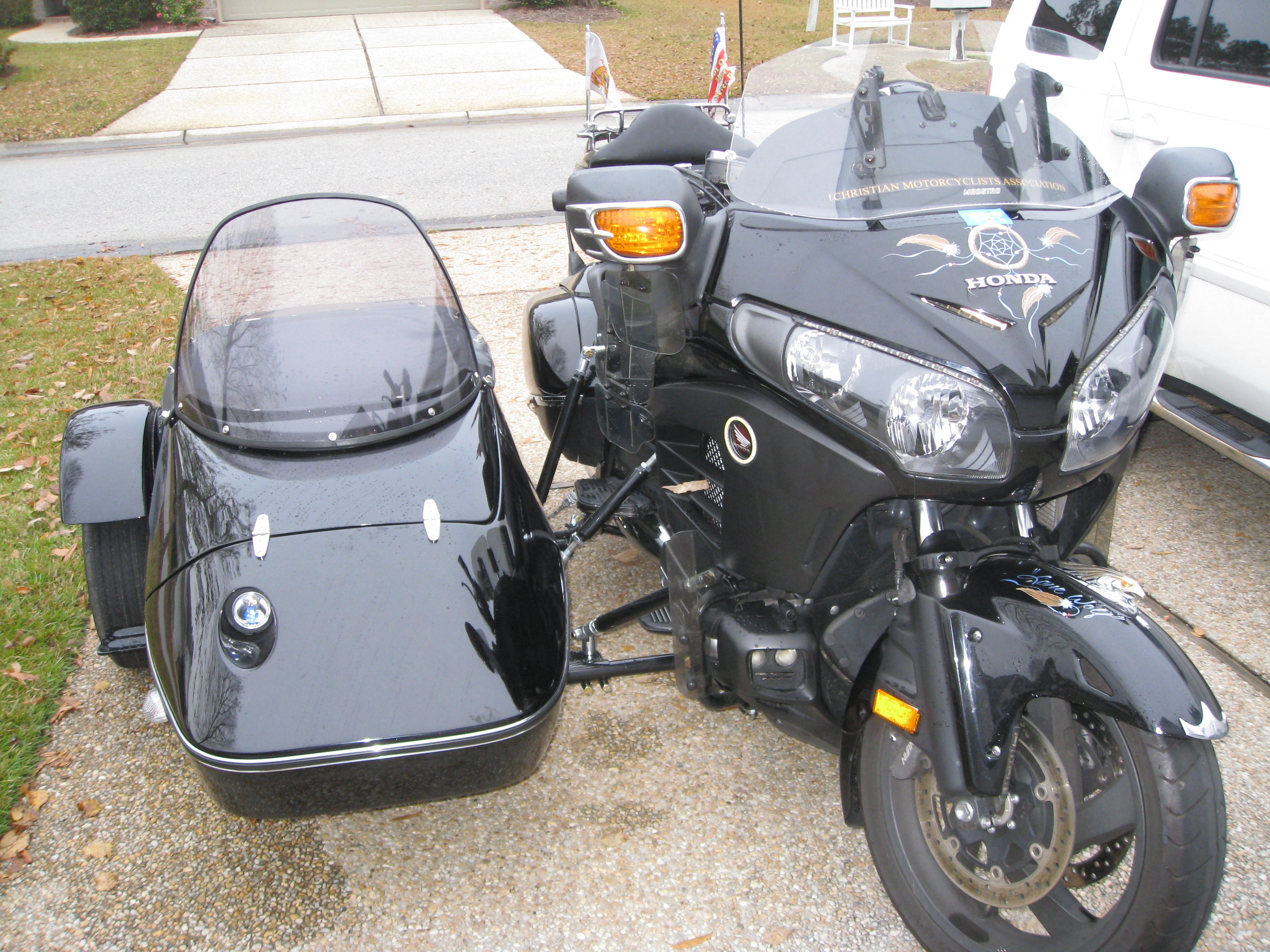 Chuck, I think you'll find the book well worth it. Friday should be great weather. One of the F6Riders at our weekly Wednesday Breakfast saw the photos of your outfit on an F6 Forum he frequents. He said it looks good. I believe my outfit is probably a bit heavier than yours, but during the "novice" stage, and not wanting any surprises, I do carry about 35 lbs of gravel in a bag in the trunk. Later, when I want to lift the car, I'm going to be takeing it out. Is your Wife riding her trike down to Florida? Certainly hope you have good weather for that trip. Ride Safe, my friend.