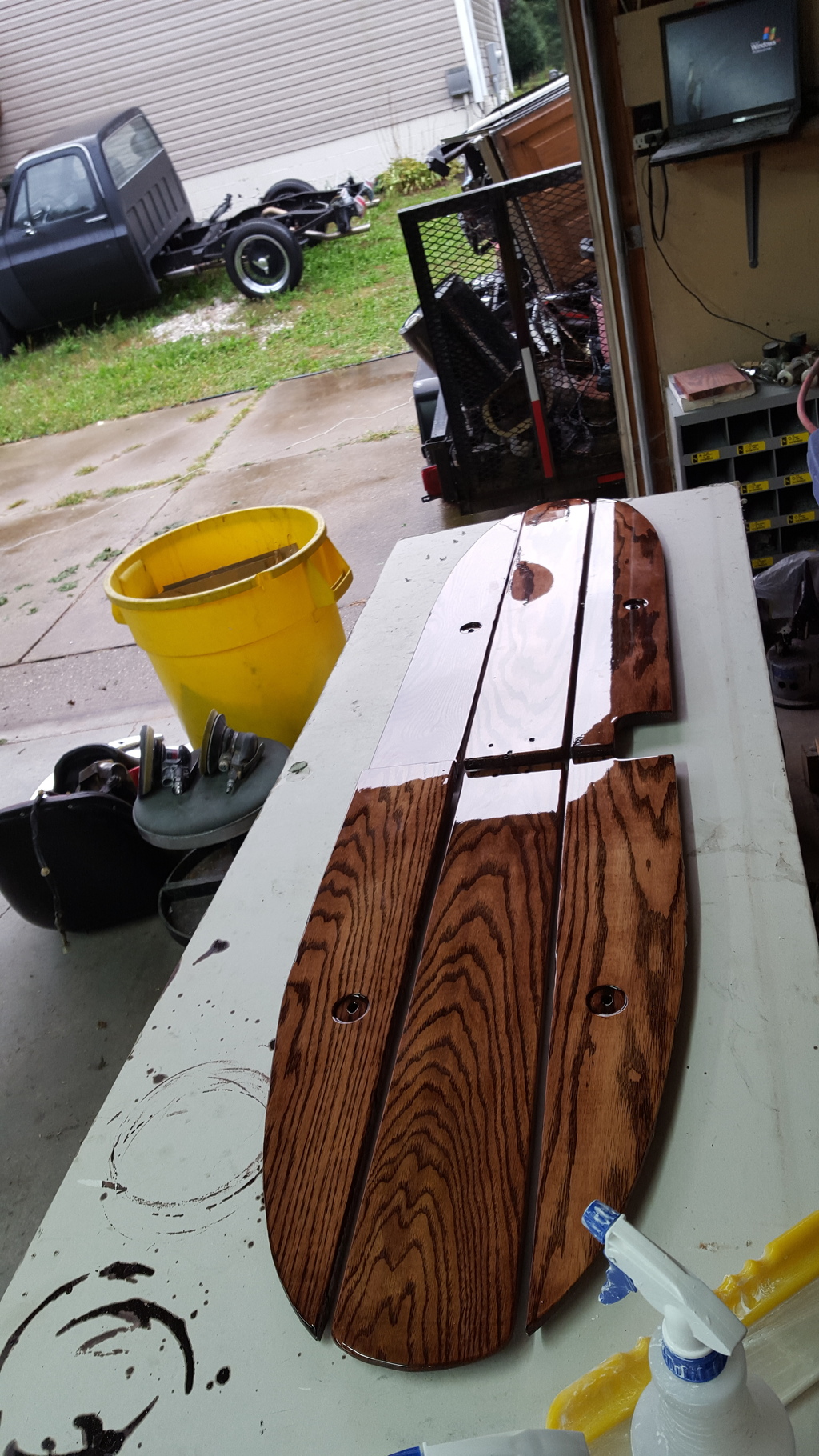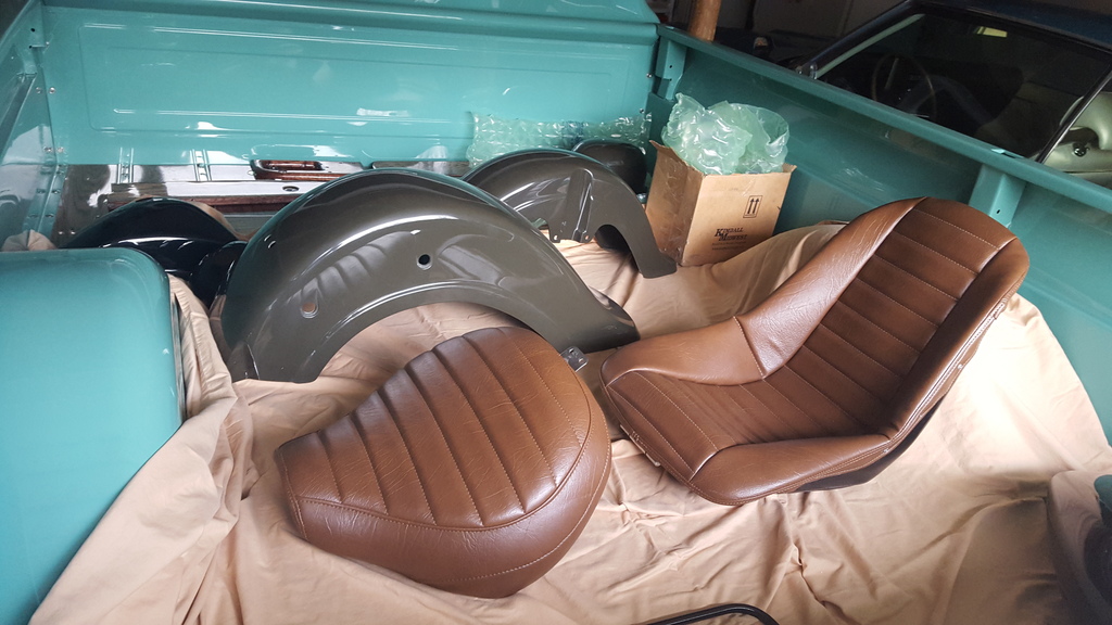 I'm really thrilled with the polished aluminum strips. I thought i'd have to glue them in, but the extra width of the clear on the boards, and the carpet making the rig slightly narrower inside, meant that just putting them in and tightening the four bolts was enough to snug them right in. The short pieces i'll likely put some RTV on to hold in place. I also had some solvent bubbles on the seat back paint but i don't care at this point, it's not perfect and you really don't see that anyways. I wish i could think of a latch system to hold it snug unless you need to get in the back, so you don't hear the seat banging when it's not loaded.
