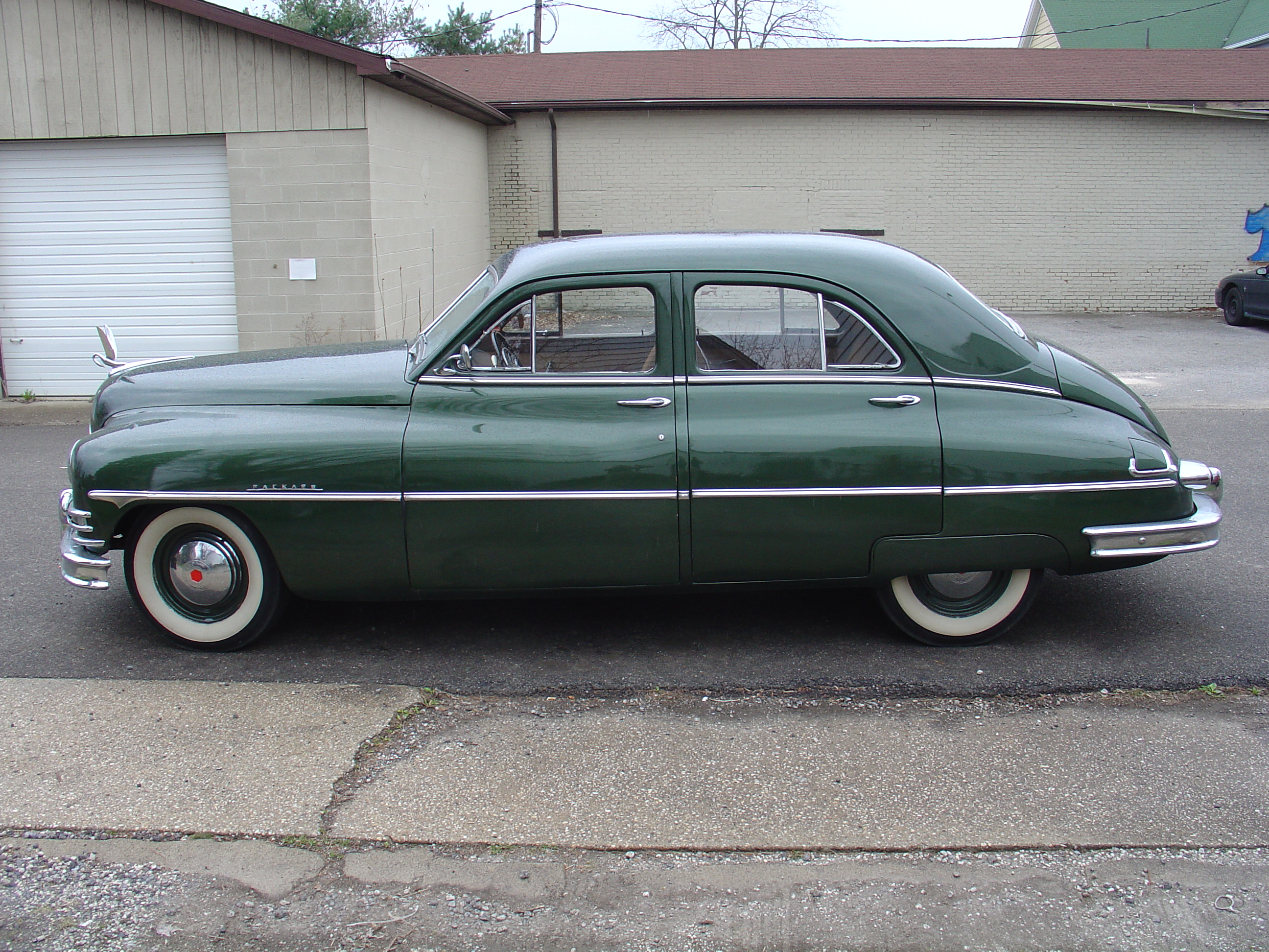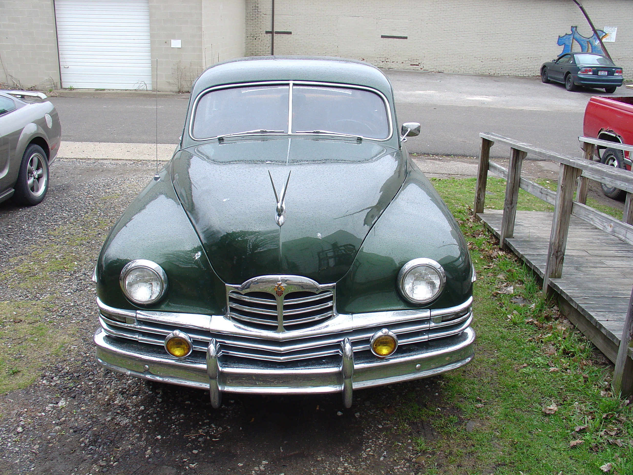 On the car in the background, Hudson is close, but she is a packard, 50 ultramatic 4 door. Engine is out currently, spun a rod bearing, likely won't get it back for several months and i'm not in a hurry for it. The color green it is, could throw some stars on the door and some little flags on the ends of the front bumper and pull the bike around too!