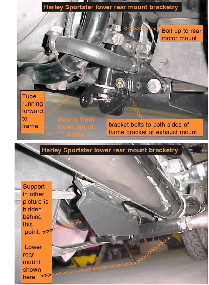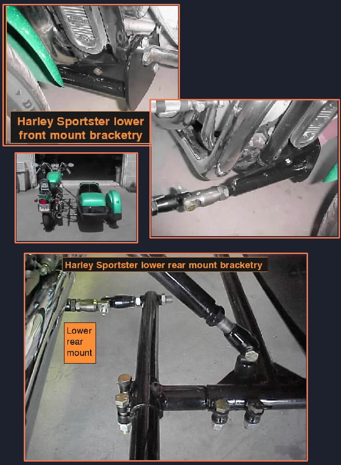 I wwas told by a long time Harley employee and long time sidecarist that the swingarm support area on these newer sprotster frame was amn investment casting that had little additional strength to deal with much. This was why things got a little invloved when we mounted this sidecar.