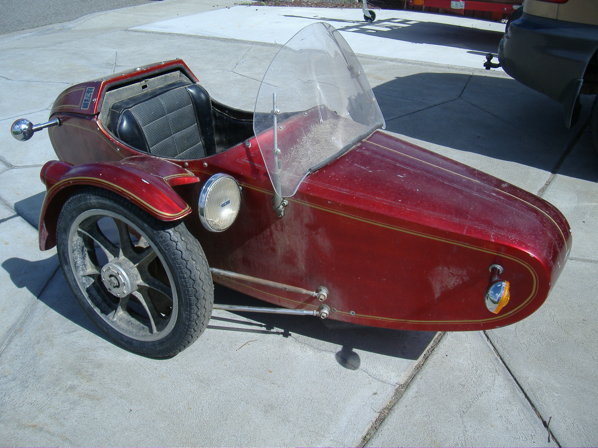 The Motorvation Spyder is a well built classic sidecar with british styling. Though quite compact they have been used for years on even large motorcycles. Two models are made. The T1 for most motorcycles and the H-D (Heavy Duty) for the Harleys and other large bikes. Both appear the same but the H-D comes equipped with a self contained disc brake system. Earlier models also had a Magnum 500 air shock to adjust loading and riding height.