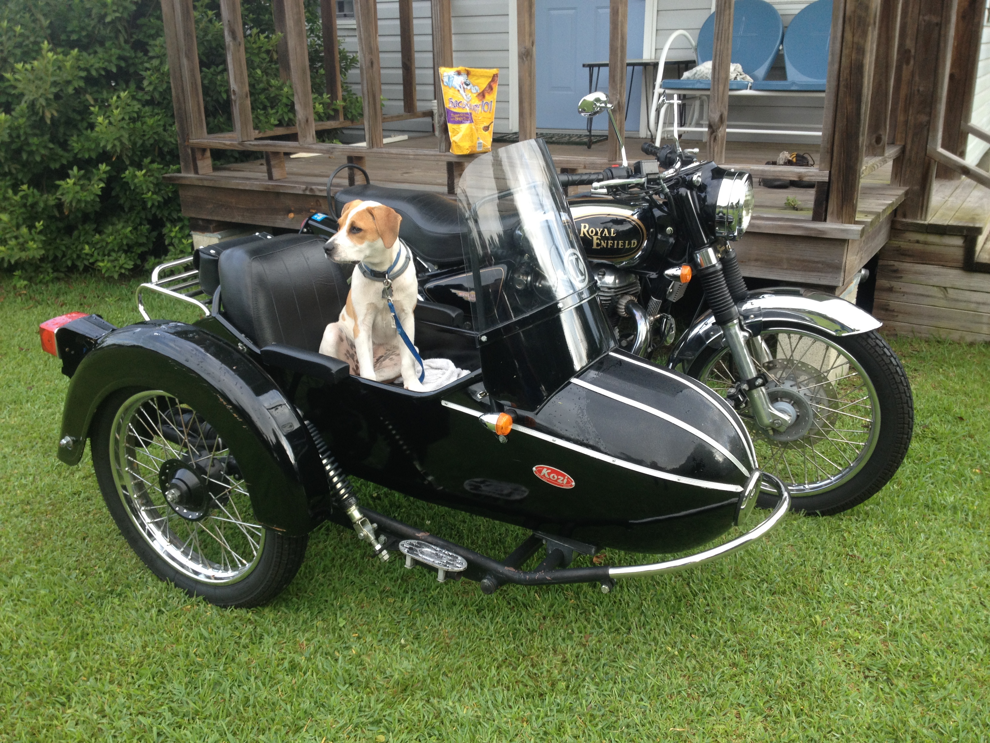 Last weekend went to the Memorial Day Motorcycle Blowout in Gulfport, MS. Local TV news claimed there were over 10,000 bikes there and I believe it. Most of them were Harleys. It is held at a drag strip and they were having some serious competition. I was riding the Royal Enfield G5 with Kozi Rocket sidecar. It was a real crowd pleaser. Everyone seemed to like the bike and I must have told the Enfield story a hundred times. Got there late on Saturday and could not enter the competition for best of class. It would have been an easy win. I wondered all over the place numerous times and only saw one other sidecar rig. It was an older Harley with a homemade car. Looked like a rat rod. Had "Bandito" gang markings all over it. Never did locate the rider.