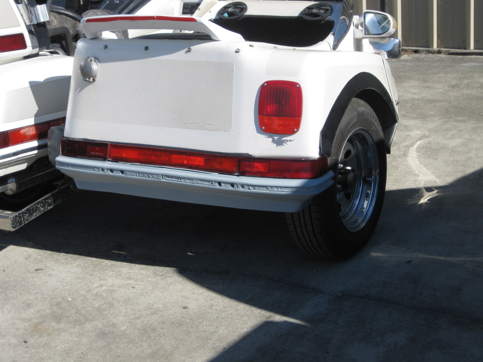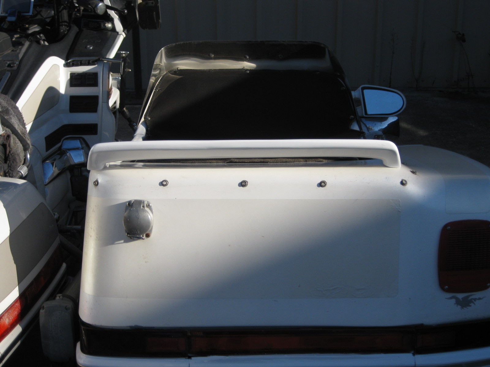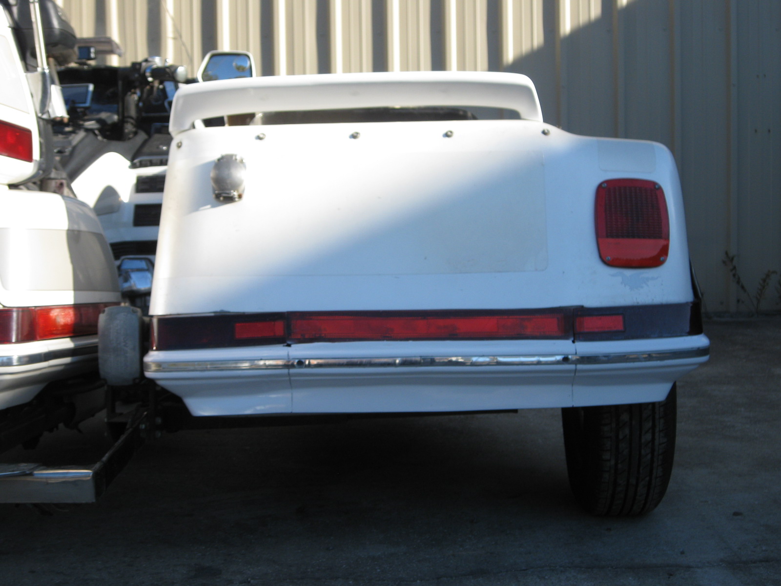 I have made a little more progress, I got the spoiler back together and hit it with some paint. I still have to finish the base where it attaches to the car and get the LED light installed but the overall mod is done. I got the tail light section complete and threw a little paint at it as well. it is from a rattle can and is only intended to look better than primer. I still have to add the seal around the top of the lights and install the new mud flap. this too is in it's almost finished stage. it's gotten too late in the year to do a proper paint job so I will have to wait until next spring to sand everything thing down for it's real paint job