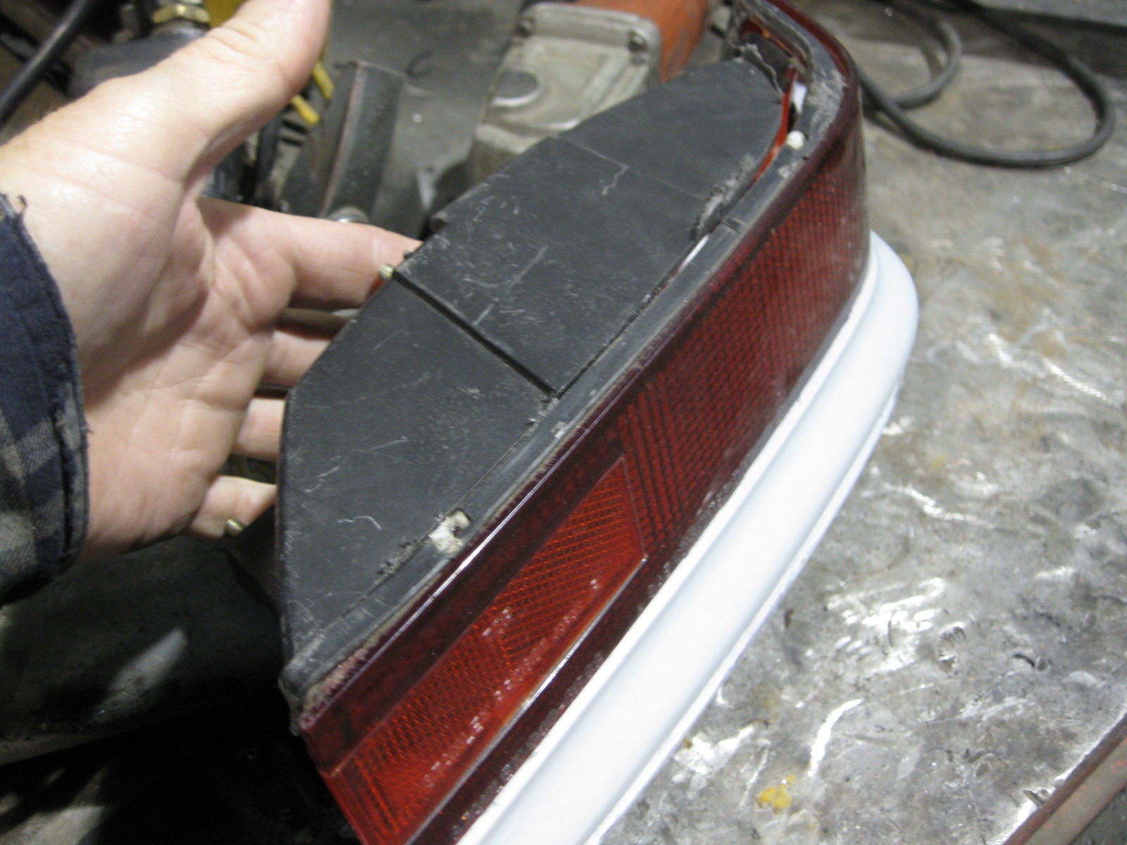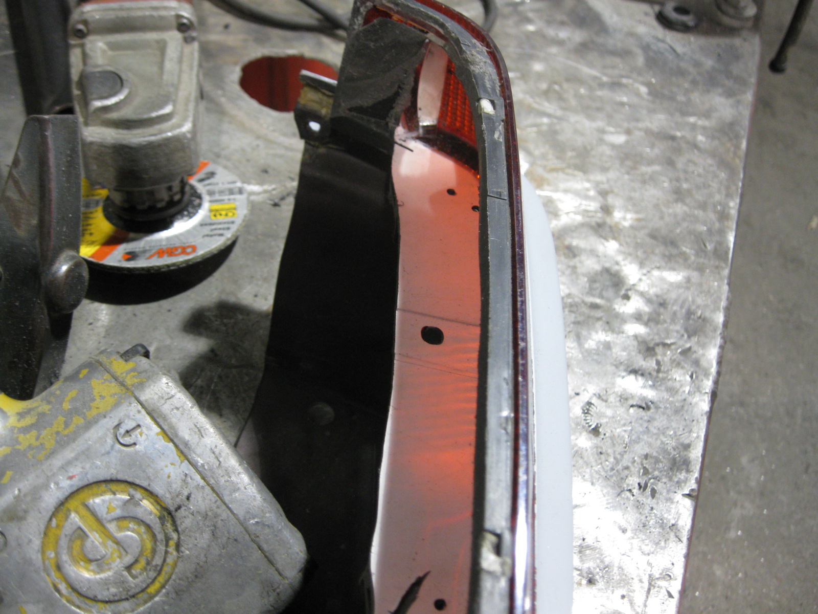 here are a few pictures, showing the taillight housings and after I cut them down to fit, then the rear part of the refractor lens I had to mold to the taillight. the lights are just sitting in there loose but you get the idea of how it's going to work