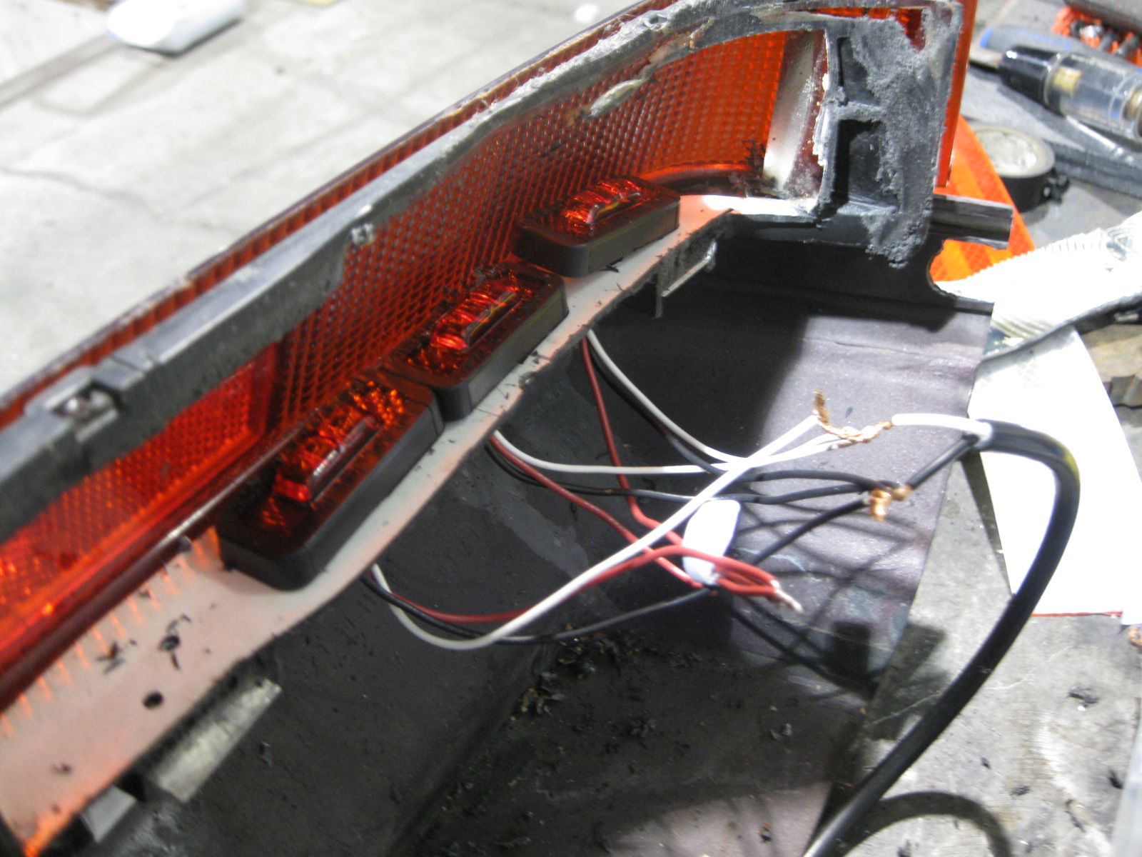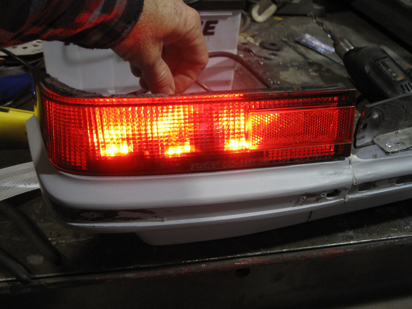 I have been struggling with getting lights that will work because it is such a narrow area to work with now that I had to cut the backs of the lights down to get them to fit up to the back of the car. they make a triangle shape now that goes from the lens edge down and only goes out about 2.5 inch out at the bottom. this meant I had to remove the entire refractor area of the light assy. and now even a 1156 bulb won't fit inside the area I have to work with. Now I knew this going in so I knew I would have to go LED and most likely LED strip. the problem was getting the right brightness and having different brightness for the brake and turn lights. Well today I finally found my answer. I found a small 3 bulb LED that has 2 brightness ability using 2 sep wires, so I am installing 3 in each taillight and I took the refractors and using the heat gun flattened them out then molded them in to fit the new lens design. it doesn't look factory because it doesn't reflect as even as it did but it works great. I'll get some pictures to show what I was up against and the little lights I found