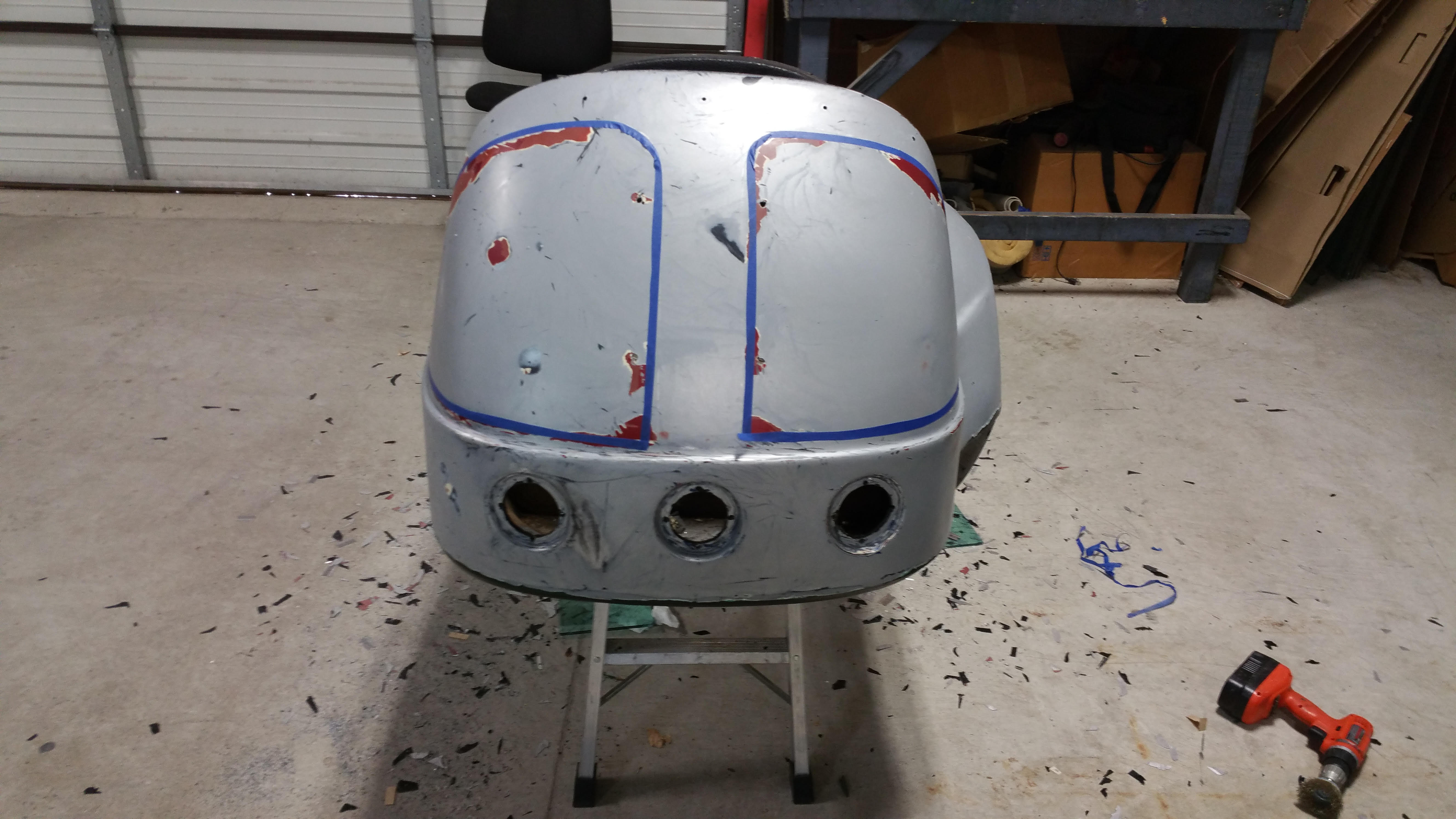 Previous owner took the old windshield off and put this cut down version on it. It'll do for now but I was looking to see what goes in all the holes around the body behind the sest , are they just the snaps screwed in for the top?. I definitely won't have time to paint it to match her bike by July but as long as it's functioning that's what matters.