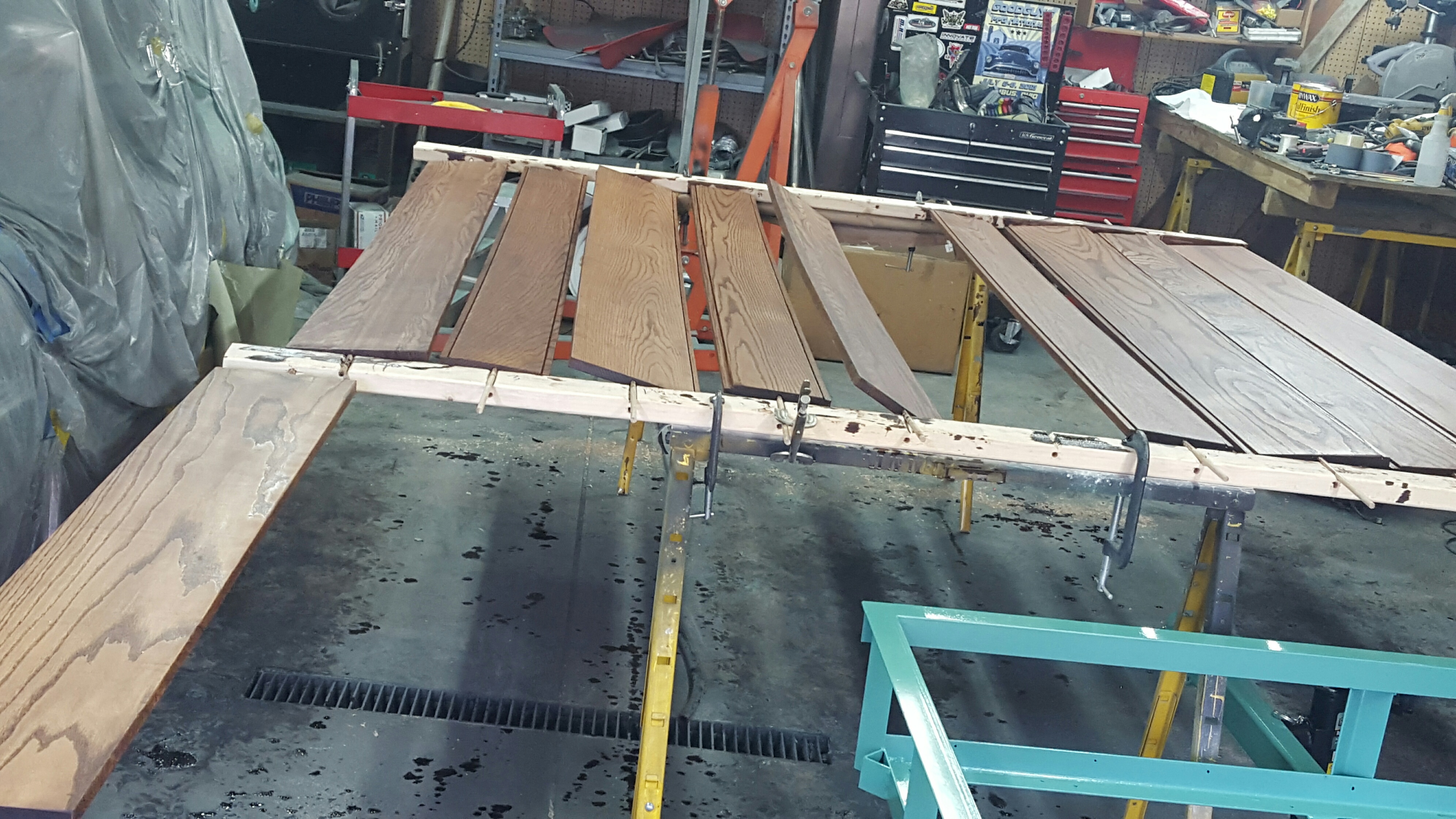 On trailers with the wheels outside the deck you need to be aware of the total width of the trailer. Now no thinking person would ever do this but say a guy was to load up for a trip. He gets the rig on the trailer and heads out of town but he needs to stop at the bank on the way. So he drives into the drive up teller lane and makes his transaction. Thinking he has checked one more thing off his list he pulls forward and suddenly there's a very loud and definitely NOT GOOD sound. It was his trailer, stuck between the posts on the drive through lane. Backing up is not an option as the trailer fenders are actually bending from contact with the posts on both sides. By this time there is a small crowd gathering, laughing and pointing. The folks from the bank are coming out too. There's nothing to do but to put the pedal down and try to power out. The trailer pops free but both fenders are bent. Not bent so badly that he couldn't go ahead on the trip but bent badly enough to be annoying and to require the judicious application of a long 2x4 to bend them back out...sort of.