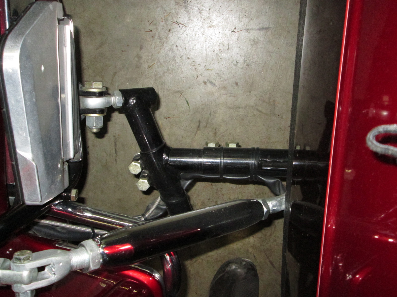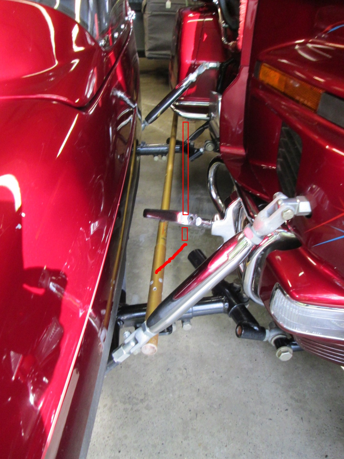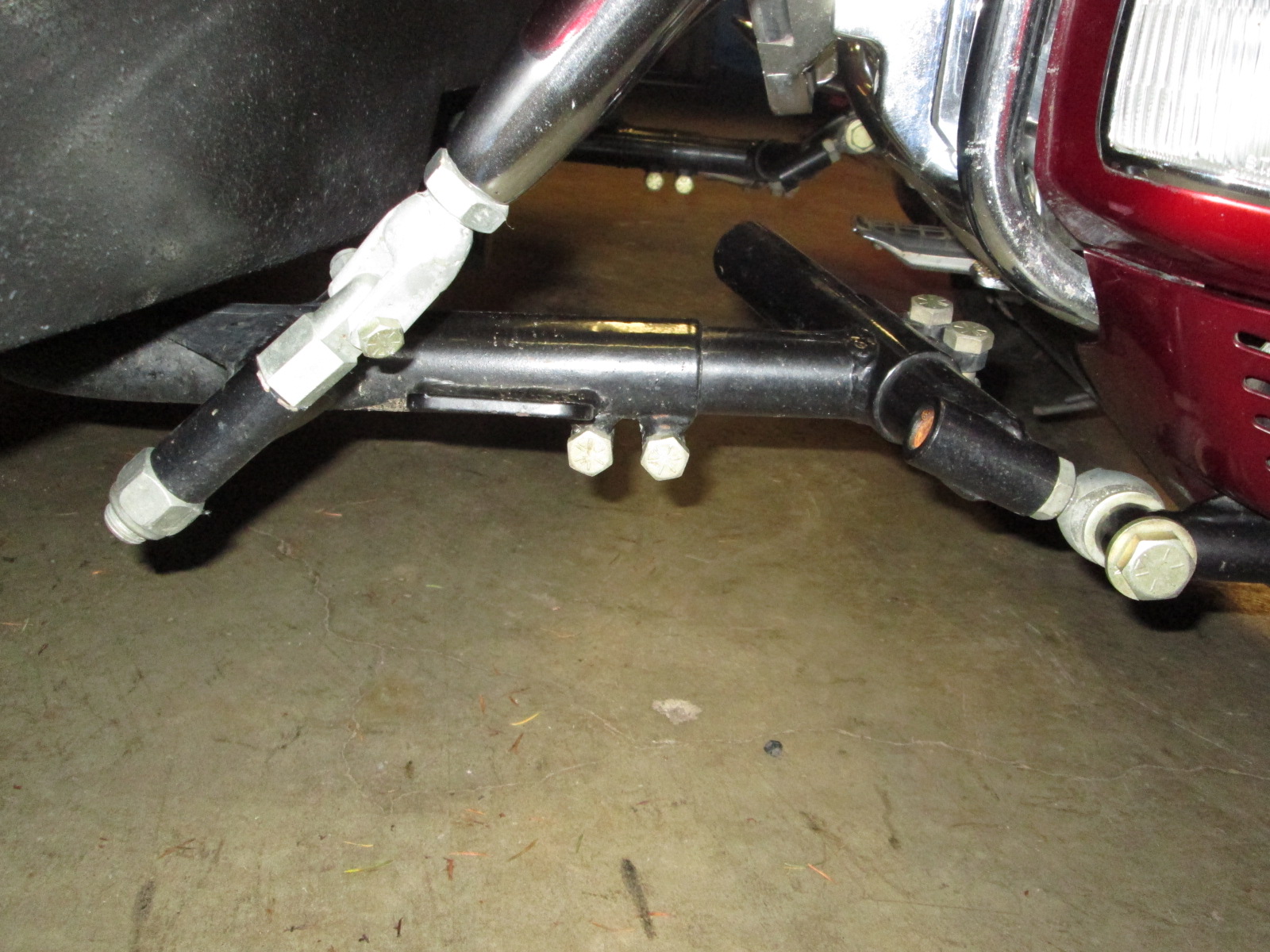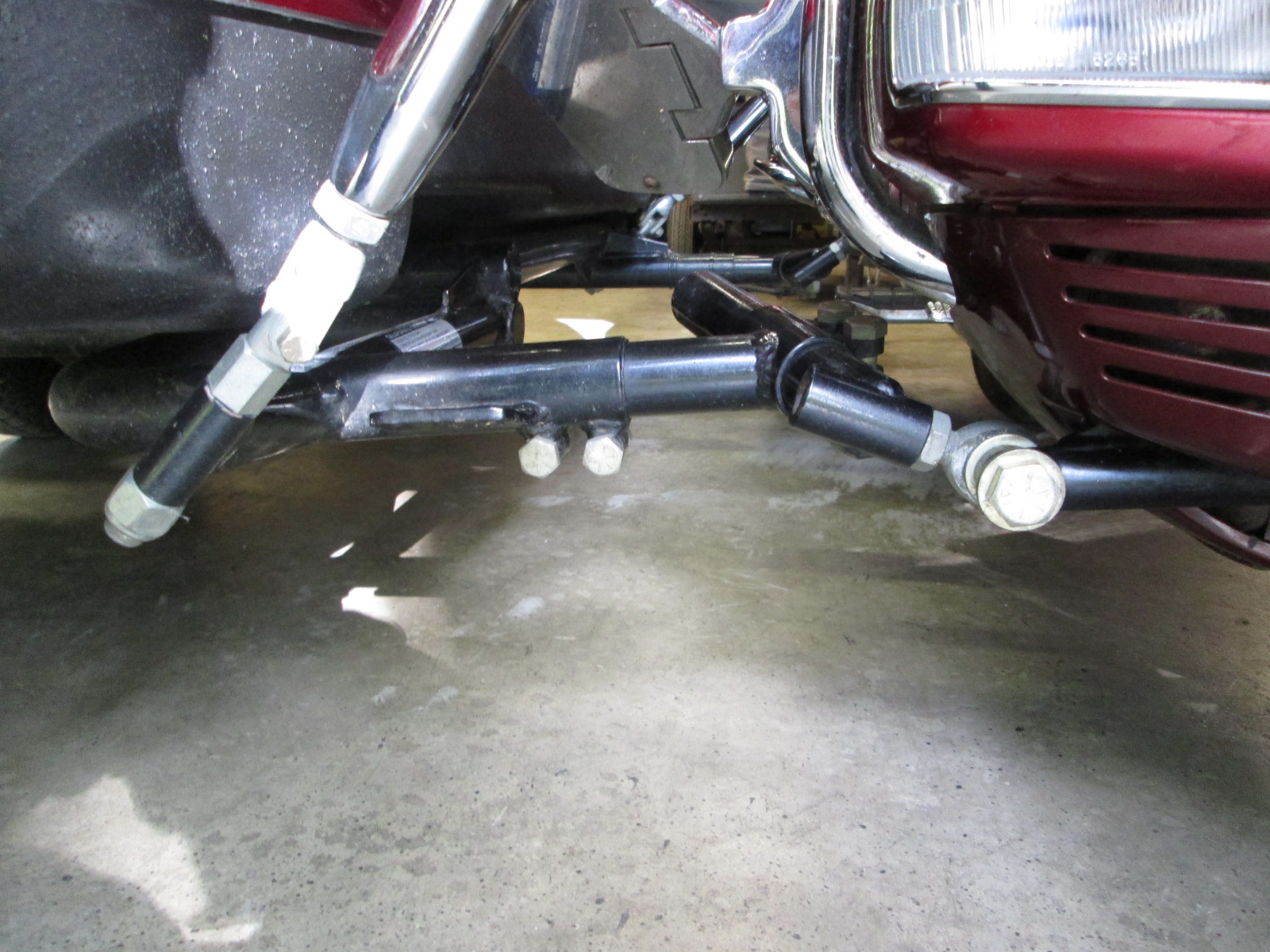 I had considered placing the ball hitch behind the tilt actuator, but would cause side draft to the right when taking off from a stop, and would further compound the push of the bike's front wheel to the left in a stop. It worked!! The trailer helps to stabilize the bike so that the natural drag of the sidecar when pulling away from a stop is not as noticeable as without the trailer hitched behind the bike's rear wheel. Stopping is the same. The trailer counters the push of the sidecar when stopping.