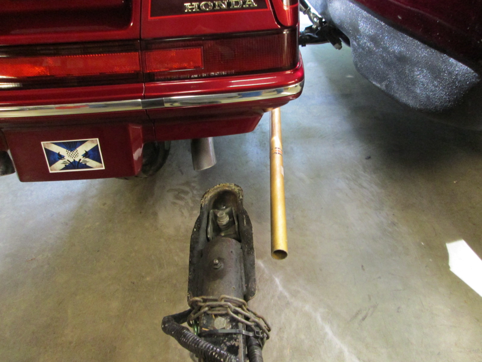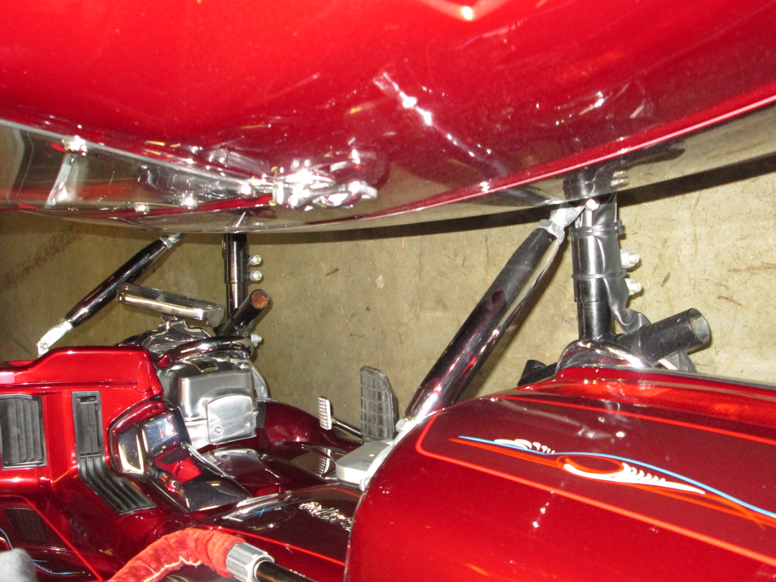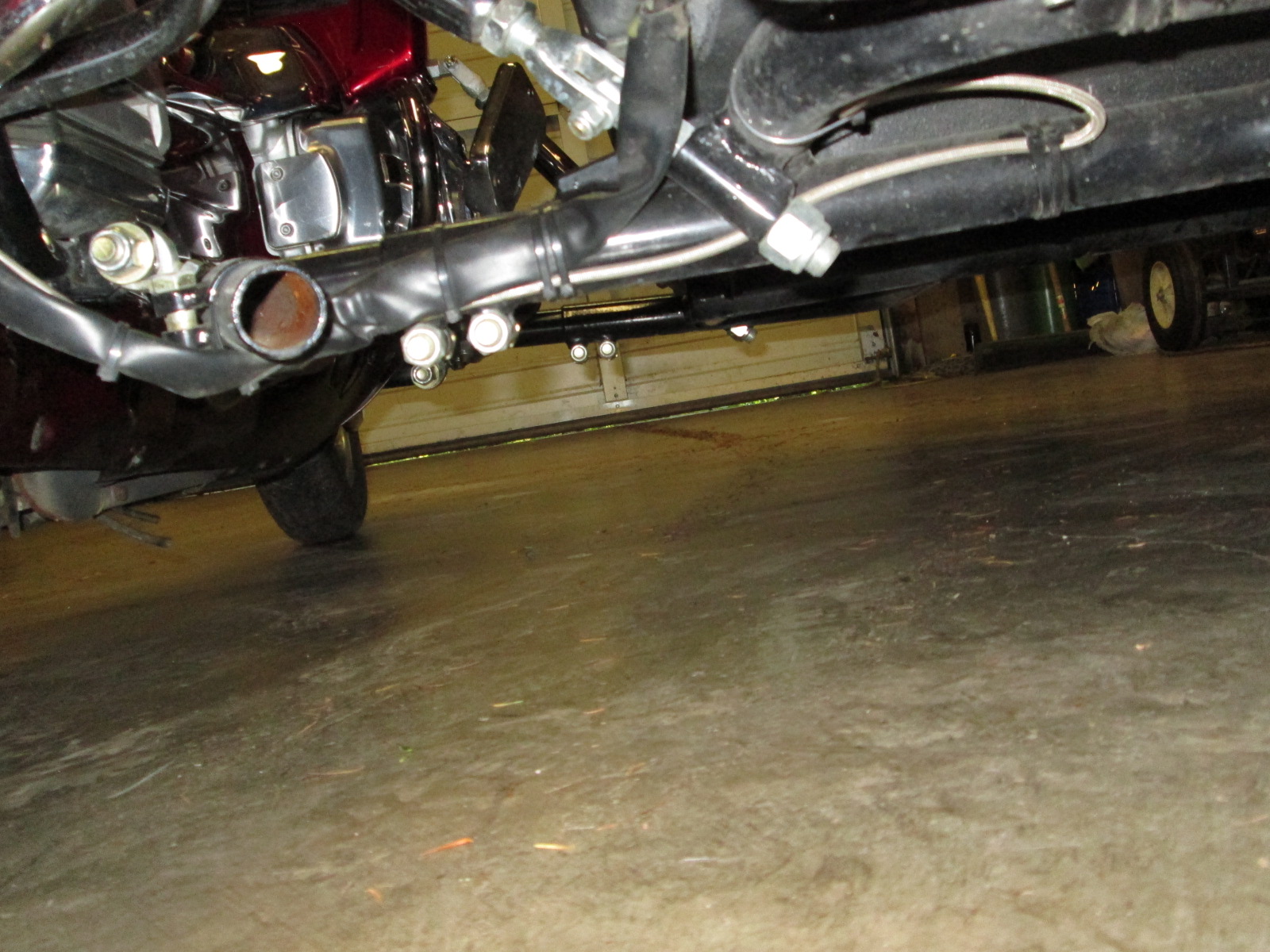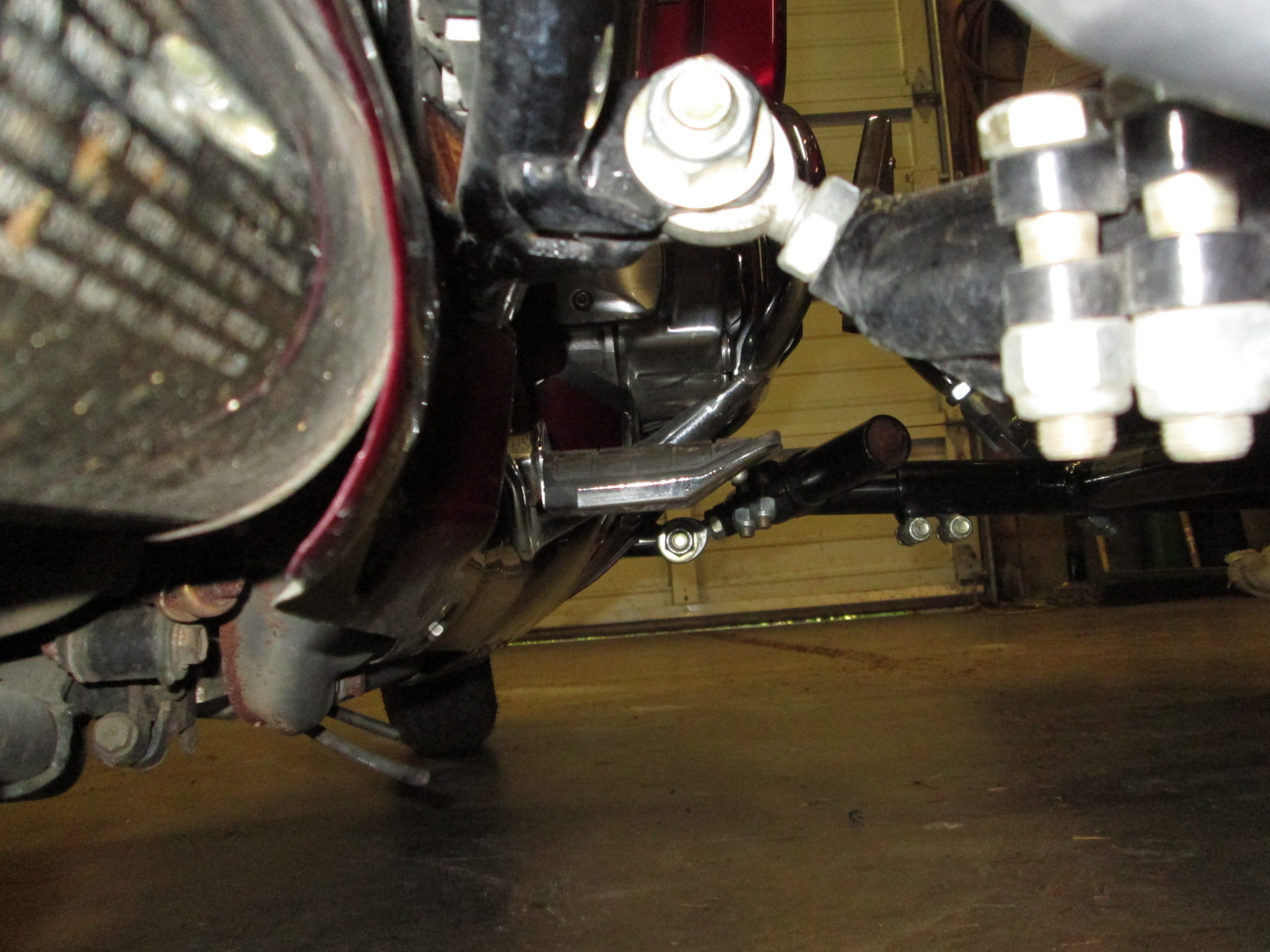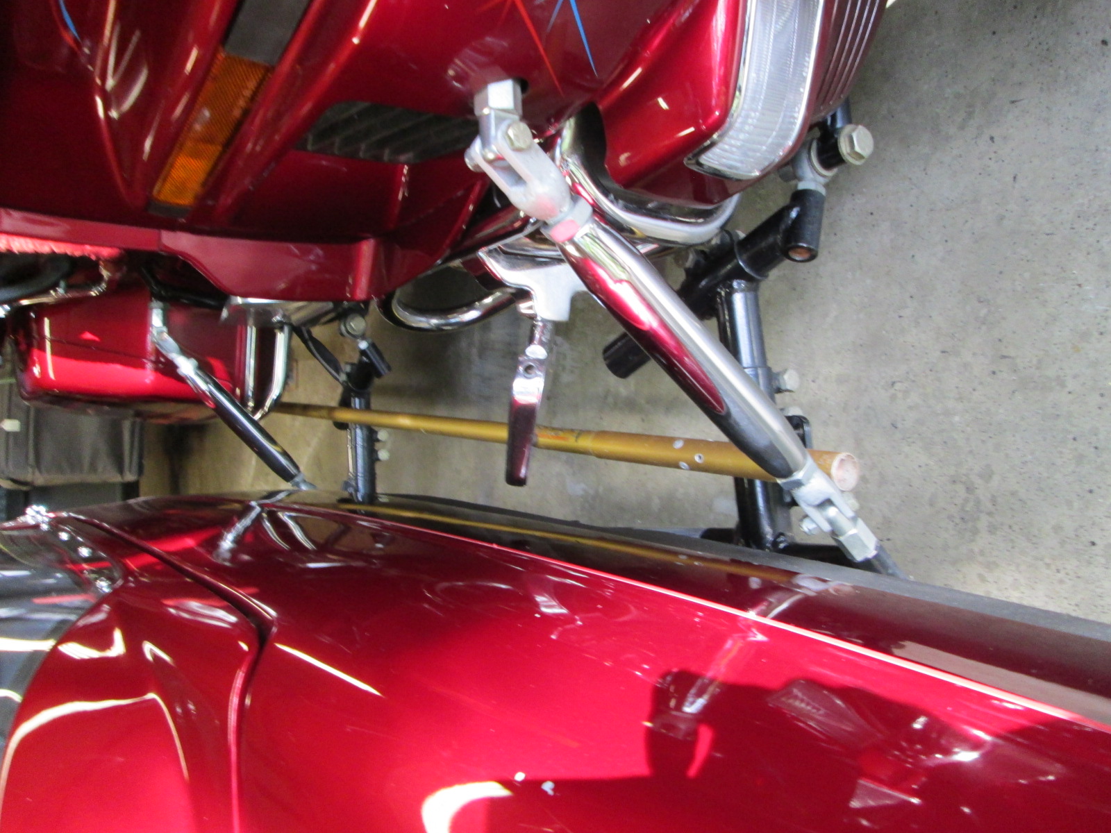 I had considered placing the ball hitch behind the tilt actuator, but would cause side draft to the right when taking off from a stop, and would further compound the push of the bike's front wheel to the left in a stop. It worked!! The trailer helps to stabilize the bike so that the natural drag of the sidecar when pulling away from a stop is not as noticeable as without the trailer hitched behind the bike's rear wheel. Stopping is the same. The trailer counters the push of the sidecar when stopping.