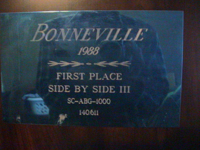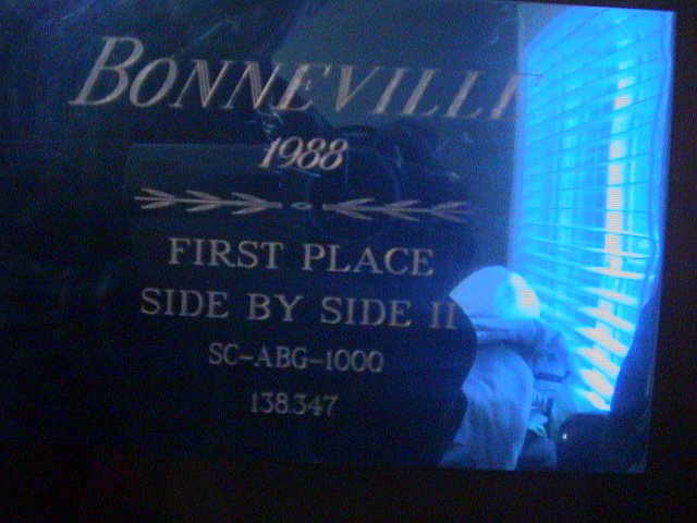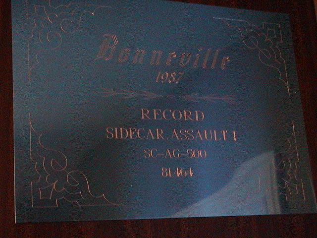 As stated in previous thread about Bonneville records set. Please find pictures, (although may be a little hard to see), of our trophies with the speeds and cc size of bikes.