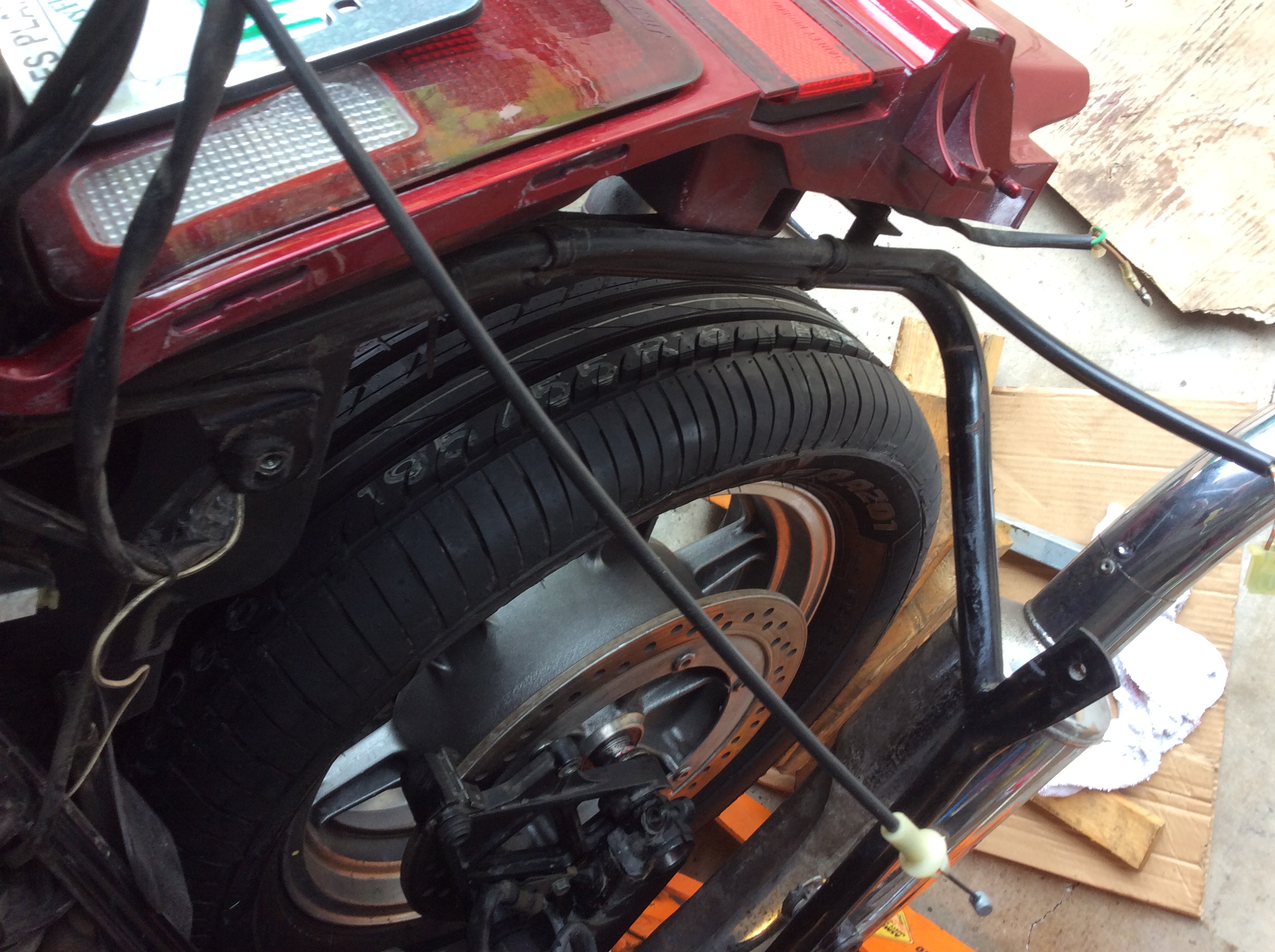 How in the heck did you manage to get a 195 to fit in a gl1500.? A number of years ago I had a 1993 Aspy. and I couldn't get a Austone taxi tire to fit without rubbing on everything under there. I took it off and sold it. What did you have to modify ?