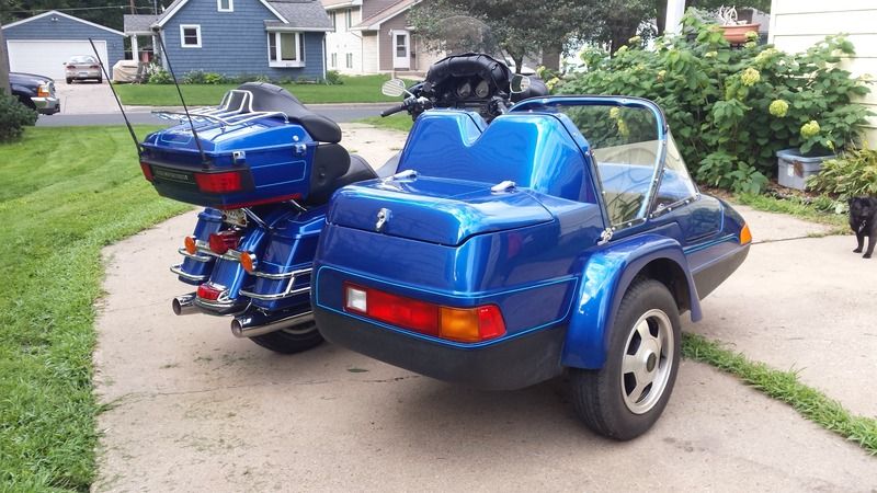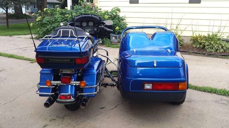 We have owned our sidecar rig for about 6 years now, and I finally got around to finishing the project I set out to do a few years ago...attach the sidecar to my harley. The GL1200 is an '86, the Ultra Classic is a 2009, and the sidehack is a California Friendship III. I used a mounting kit from DMC sidecars, and it went on pretty straight forward. Only a few hiccups (and new parts needed) along the way. All in all, I am happy with it. Still have some minor tweaking to do, but we were able to put 1600 miles on it riding out to the Sturgis Rally a couple weeks ago. Liberty Trees are definitely on my short list of finishing items...