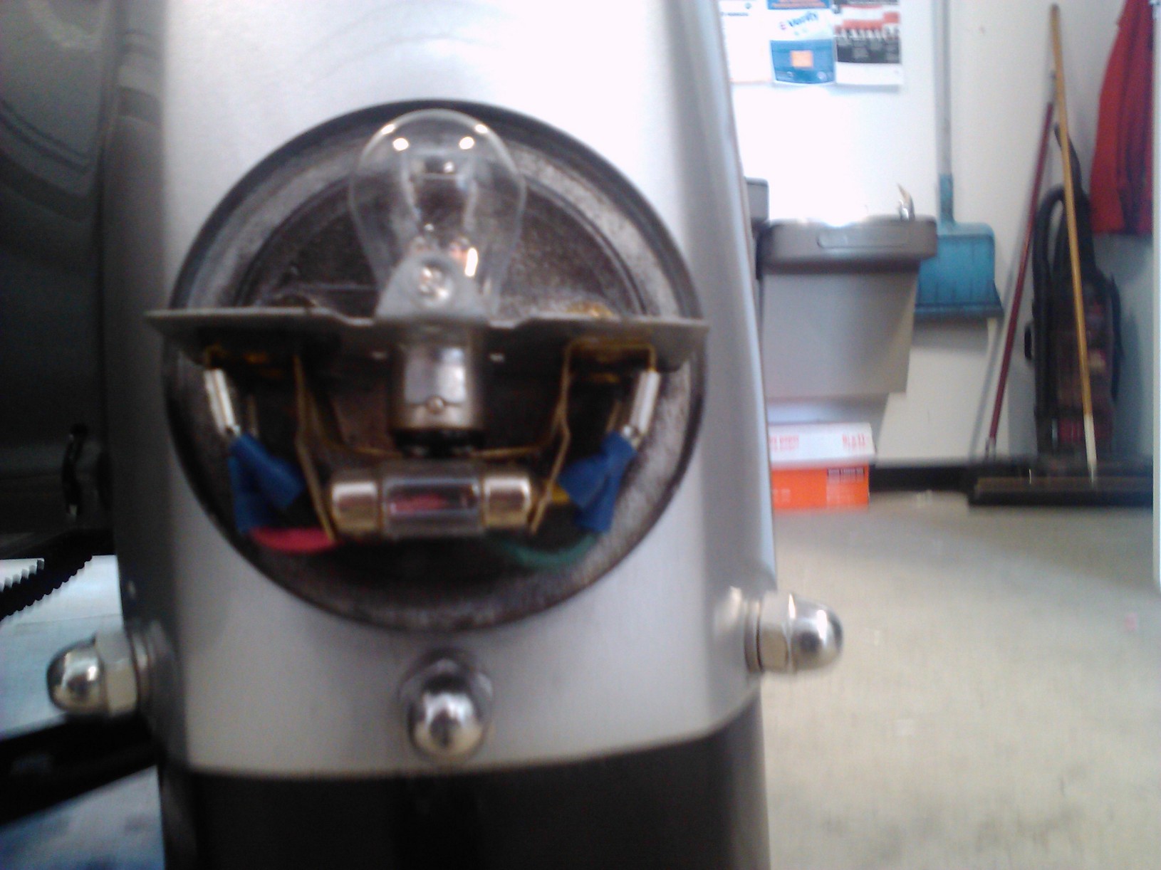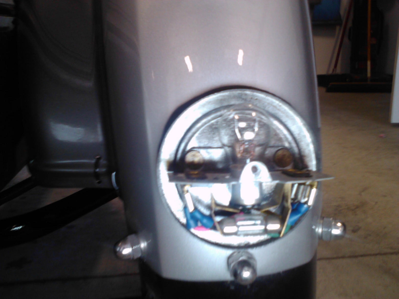 The logical mechanic might ask the reasonable question, what does the front running light look like? Ha! good question. That socket has a double seat, and that bulb is a two-filiment 1034 that works perfectly on it's lower element.