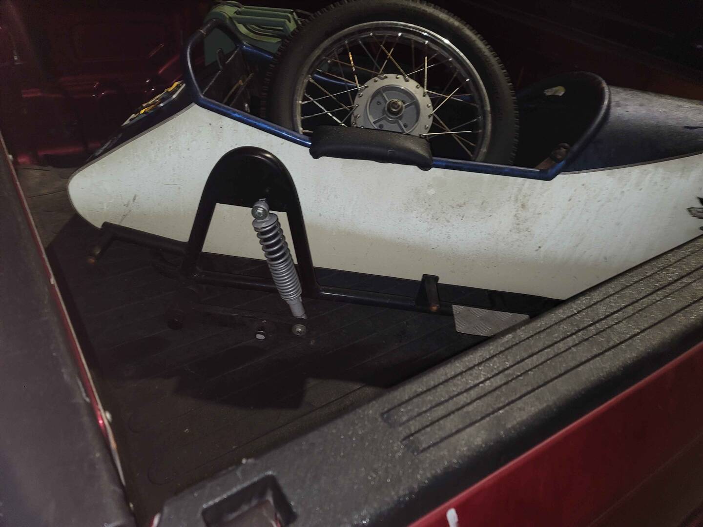 Took the dog to the dog park after helping family move. Was turning into the parking lot and THUMP, but with a more metallic crashing sound. Dogs fine, bike is fine, aside from the heavily worn side of the lean out that made riding it home feel like I was flying the chair the whole way. Was able to have my dad bring my truck over to load up the tub after disconnecting it. Probably the first time I've ridden without a third wheel in the last 2 years.