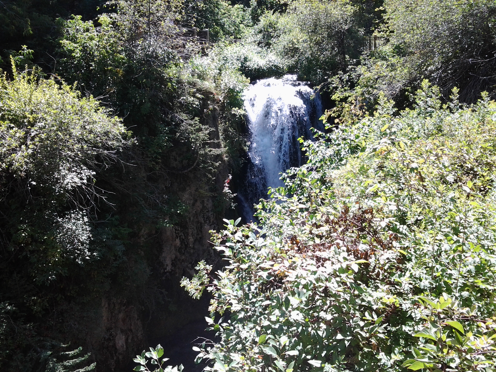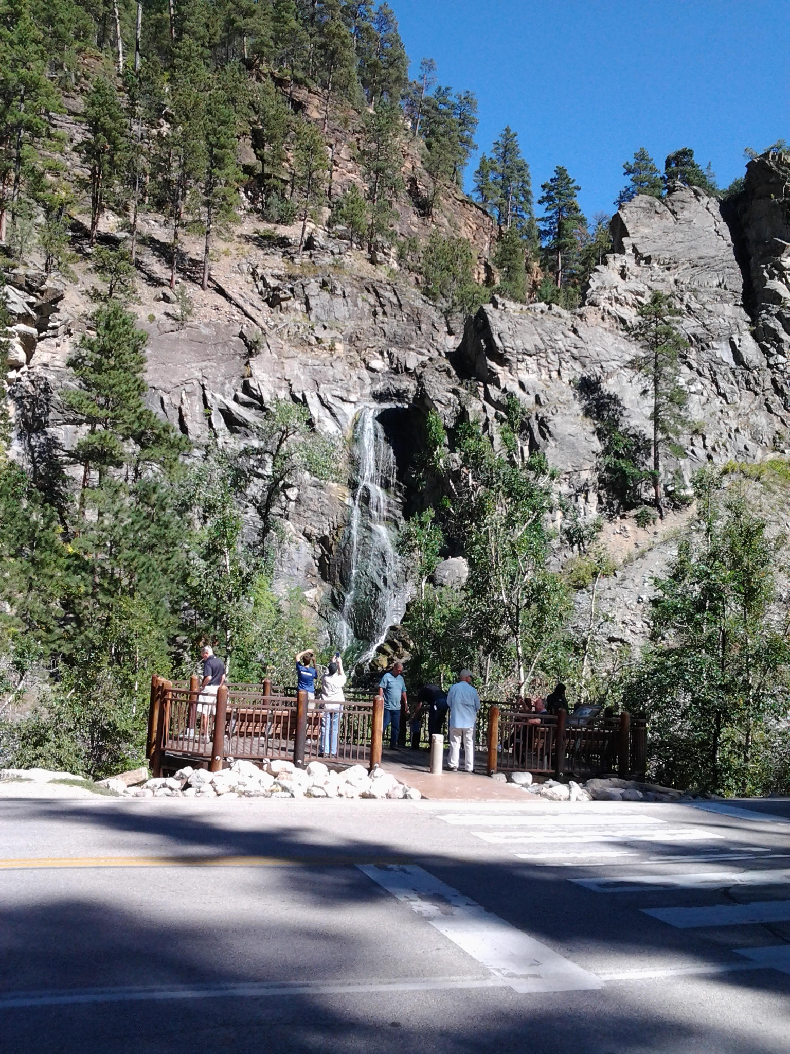 I'm afraid I am late. We didn't do this ride today or yesterday. We did it Saturday. The Short Brothers and wives rode the canyons again. This time we stopped to view the falls - Roughlock and Bridal Veil - both in Spearfish Canyon. It was a beautiful day for a ride in the Black Hills. It was too early for the fall colors but the colors are beginning to change. We had lots of company wherever we went.