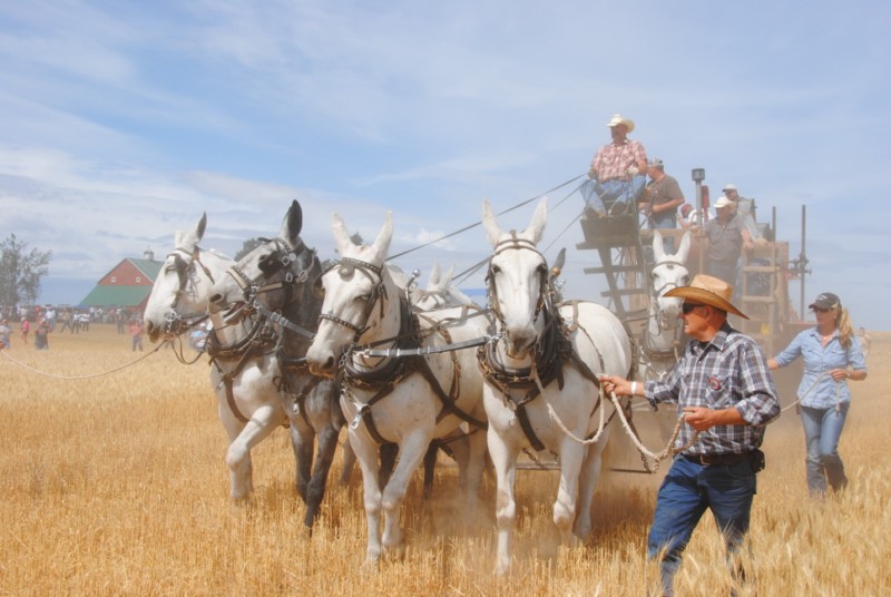 Petey and I spent the week end at Vintage Harvest. We were the only sidecar rig among a bunch of vintage farm stuff. The hit this year was a wooden combine pulled by a mule team. And I'll post my favorite photo of some 500 I took this week end. One lady editor of a magazine had us pull down with the vintage vehicles so she could get our photo.
