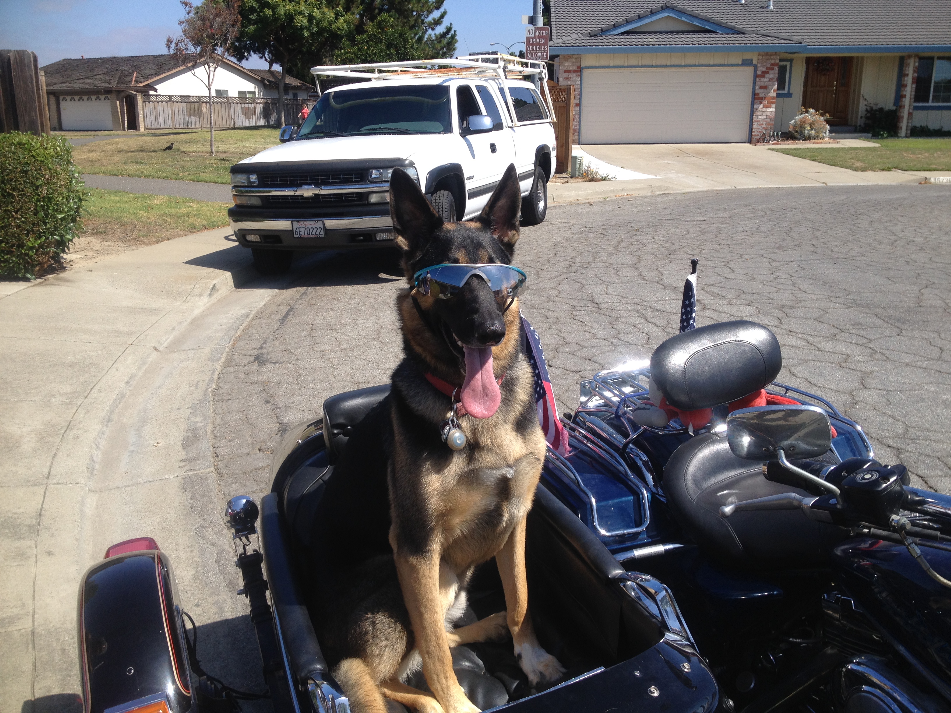 Got my brakes bleed this morning and all the lights working and took the outfit for a short ride today to attend a service for one of my long time sailing friends who passed away. Worked with Mr. Dawg and he will now jump in and out of sidecar without a problem. I figured a few more rides and he will be totally cool with everything. Only thing left is to put a tie down on the bottom of the car and get him a body harness.