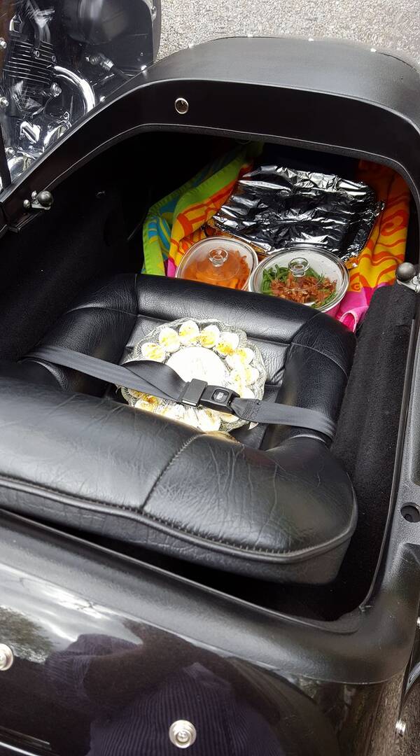 -- attachment is not available --Carrying capacity in my Yamaha/Champion! John, Easter dinner, adult beverages, water and snacks for the my brother's employees. The Wing/Hannigan is awesome because it has old school pin stripes and a lift seat, for when I'm the carrying capacity. I never drive this one.