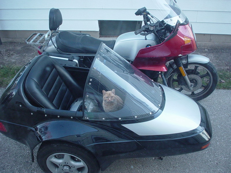 The current sidecar is a stock 2001 Champion Escort with the convertible top, a power outlet in the dash, and the trunk lock is keyed to match the bike's ignition key, so only one key is needed for ALL locks on the entire rig. There is no brake, nor TILT, but they can still be added.