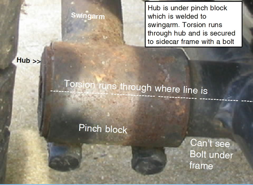 Look closer at photo # 1530. It looks like the axle pivot has been welded to a clamp of some sort. Am I wrong? You'd know better than I but looking at the pics it looks to me like the torsion suspension has been modded. Whatcha think?