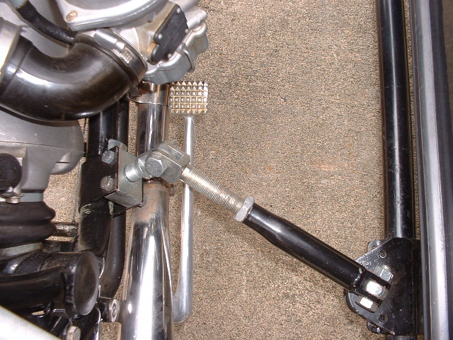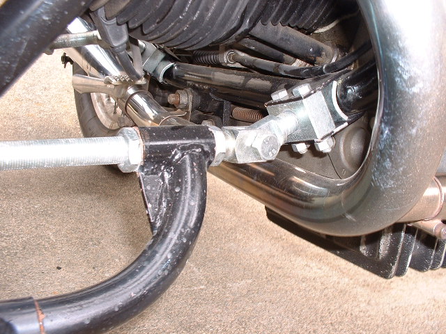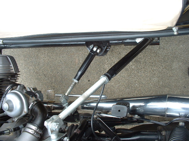 One heads up, the front, lower mount on the Spirit of Americas is the weak link on these and I see yours is still the original. If your mounting requires this to be screwed out more than a thread or two it will flex noticably. I recommend getting a different mount made. Claude or Lonnie can probably steer you right on this. Even at only a few threads out the sidecar frame will "bounce" from the flex. I had mine out to max extension for awhile and it bent. I made a mount that went from outer frame rail to inner frame rail and then attached to my subframe and that eliminated the flex. Much better ride afterward.