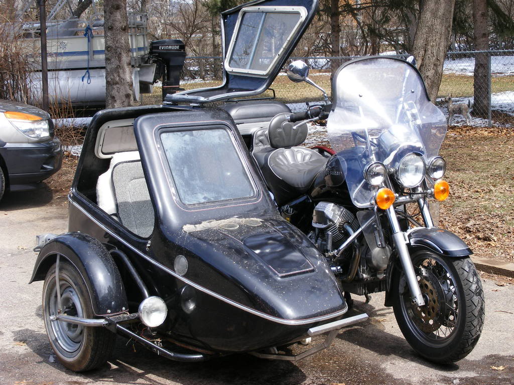 I have a '03 Guzzi EV11, and am looking for a sidecar to hook up to it. Any suggestions, we are getting it for my wifes' back, her back is not liking my backrest on the bike. She is having issues more and more, so a nice riding hack would surely be better for her.