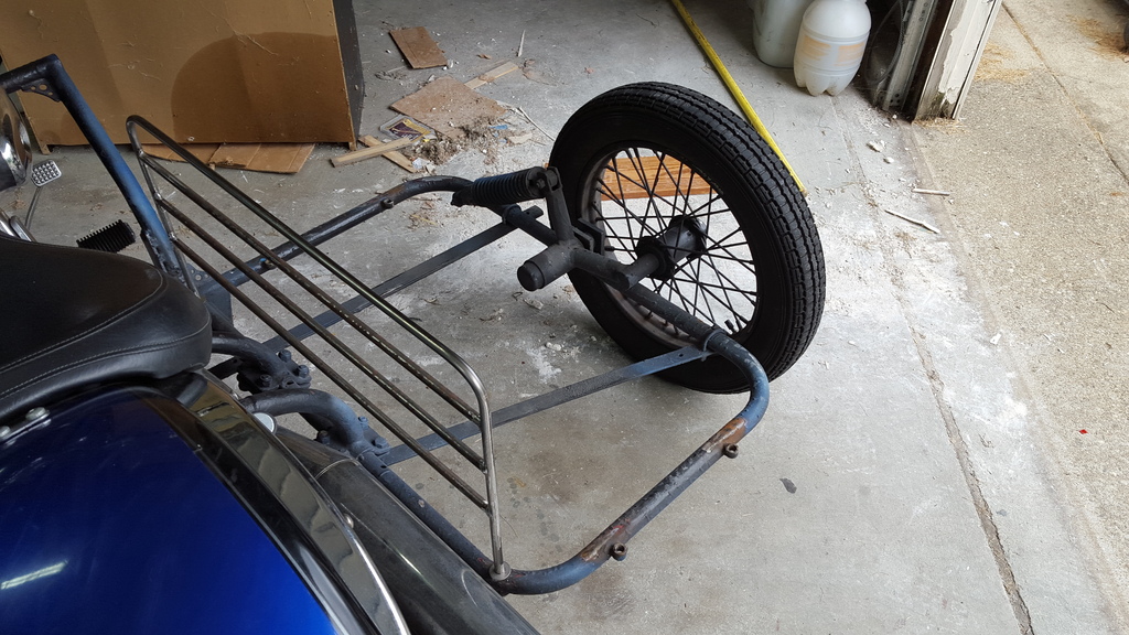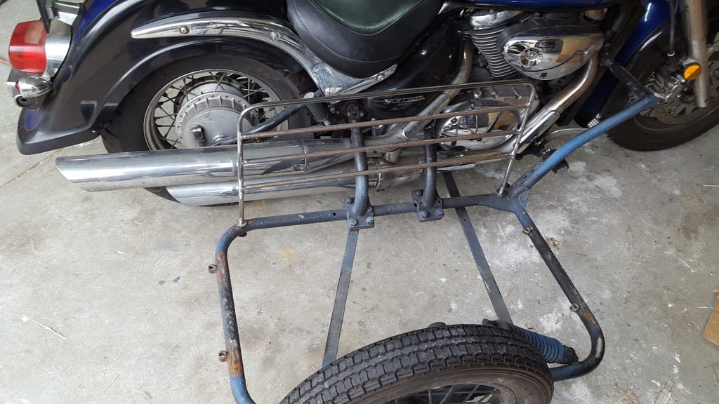 Here's the frame with a bracket i added so the beagle/daughter doesn't touch the exhaust.