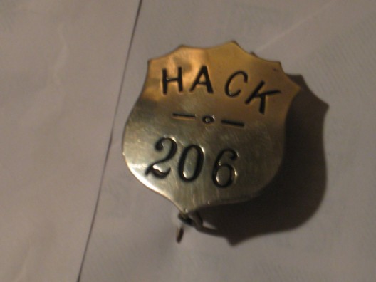 I own a "Hack" badge. Shield shaped, slightly crowned, no engraving or fancy work, pin back, sterling silver, stamped HACK with a 3 digit number below, obviously hand made. I'm sure there's a history there but it came sans story or documentation. I suspect it might be English considering the source. I'd put it on my jacket but shiny things attract sticky fingers.