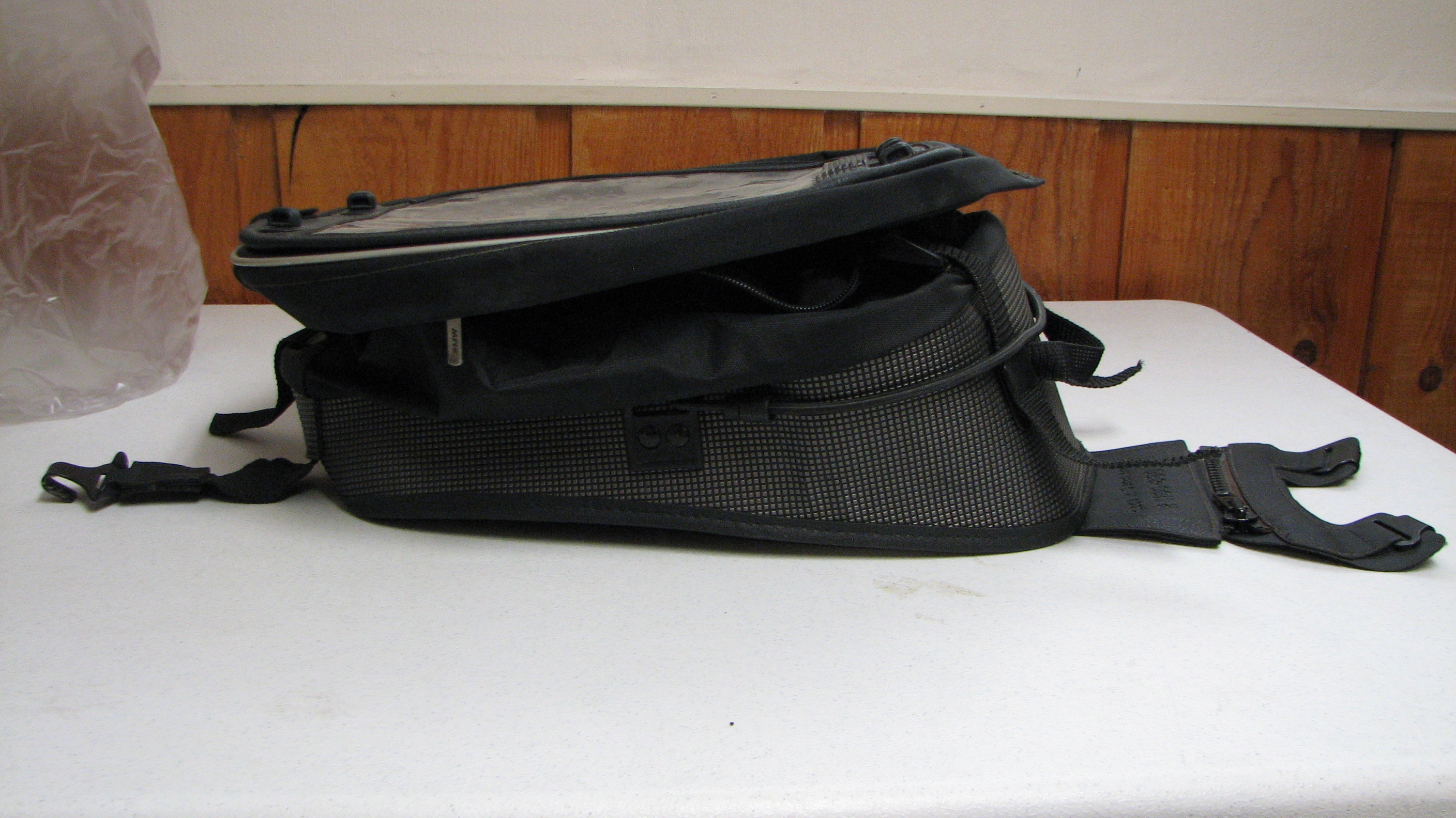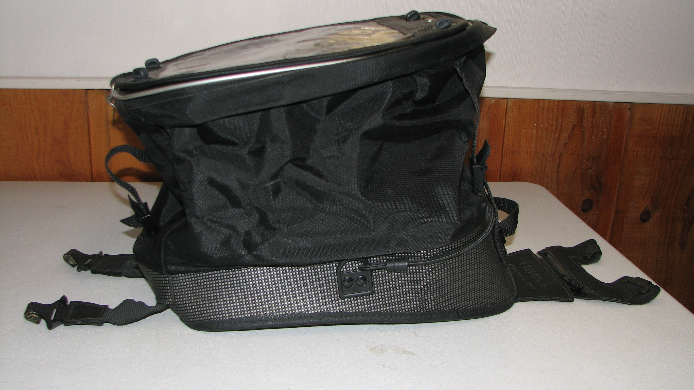 BMW Multivario tank bag. Designed for R1100/R850 BMW’s. It has a removable map case and a rain cover. It expands from about 6” to about 12”. There are still add-ons available for these if you can find new old stock at some BMW dealer otherwise they are no longer made.