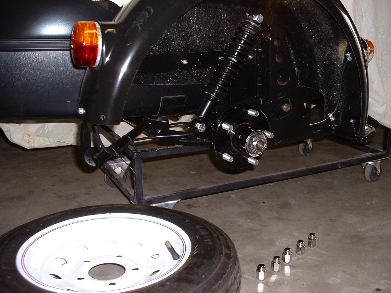 Uses modular wheel with 4.80x12" or 5.35x12" flat tread tire. Includes Heavy Duty swingarm with 1" axle and Timken bearings. Repositioned shock mounts.