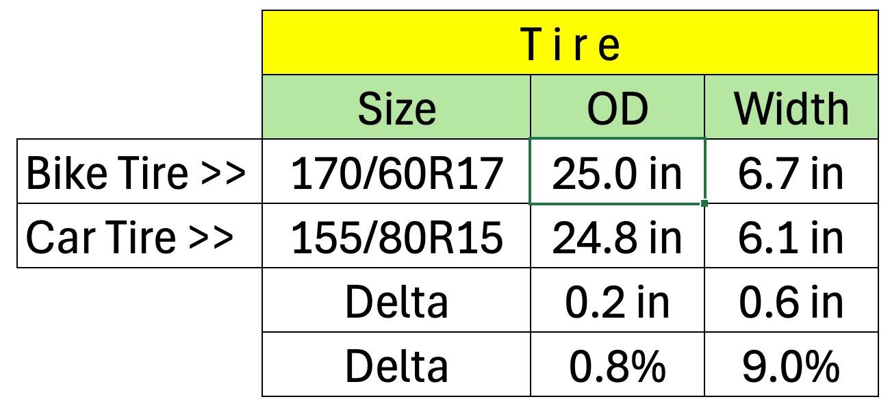 See Pict for Technical Data that compares the difference between tires OD and Width for: