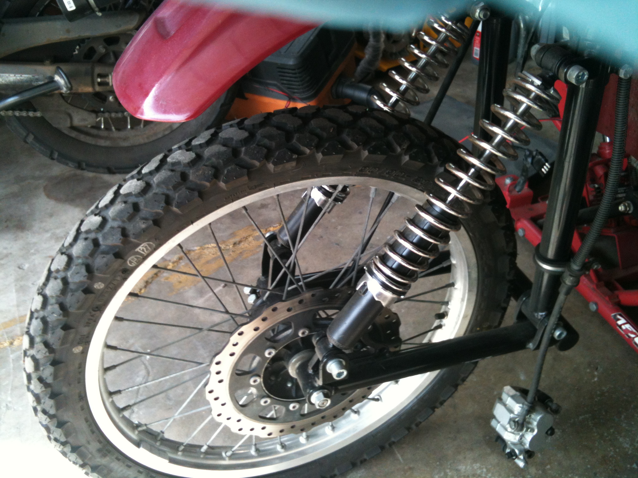 DMC Sidecars Leading link special ordered to work with GEN 1 and GEN2 Kawasaki KLR650. Special configuration to use GEN 2 large brake rotor, 2 piston brake caliper and axle. Base price $3000 was fork and shipping. Will sell with GEN 2 high volume brake master cylinder and lever, brake caliper, large wave rotor and axle and free shipping in continental US for $3,000.