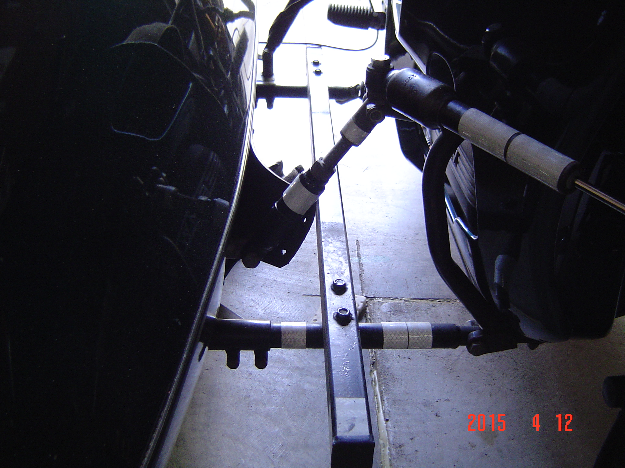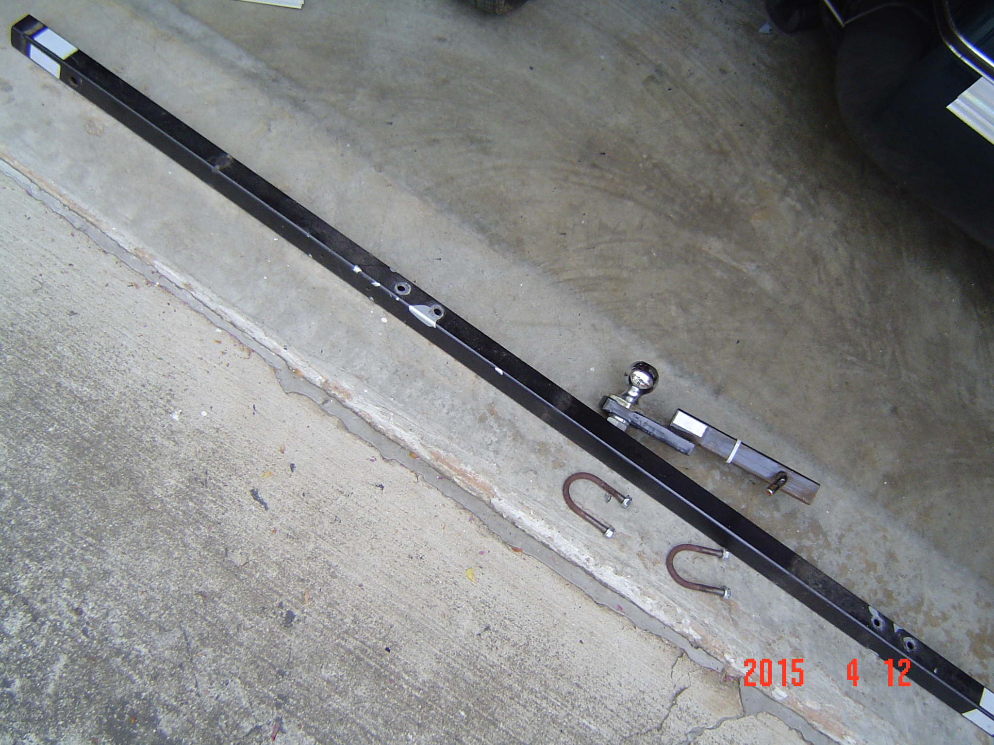 Shown on my BMW K bike w/Hannigan car. 66" long. 1 1/4" I.D. square steel tubing w/u-bolts and hitch assembly w/ 1 7/8" ball & locking pin.