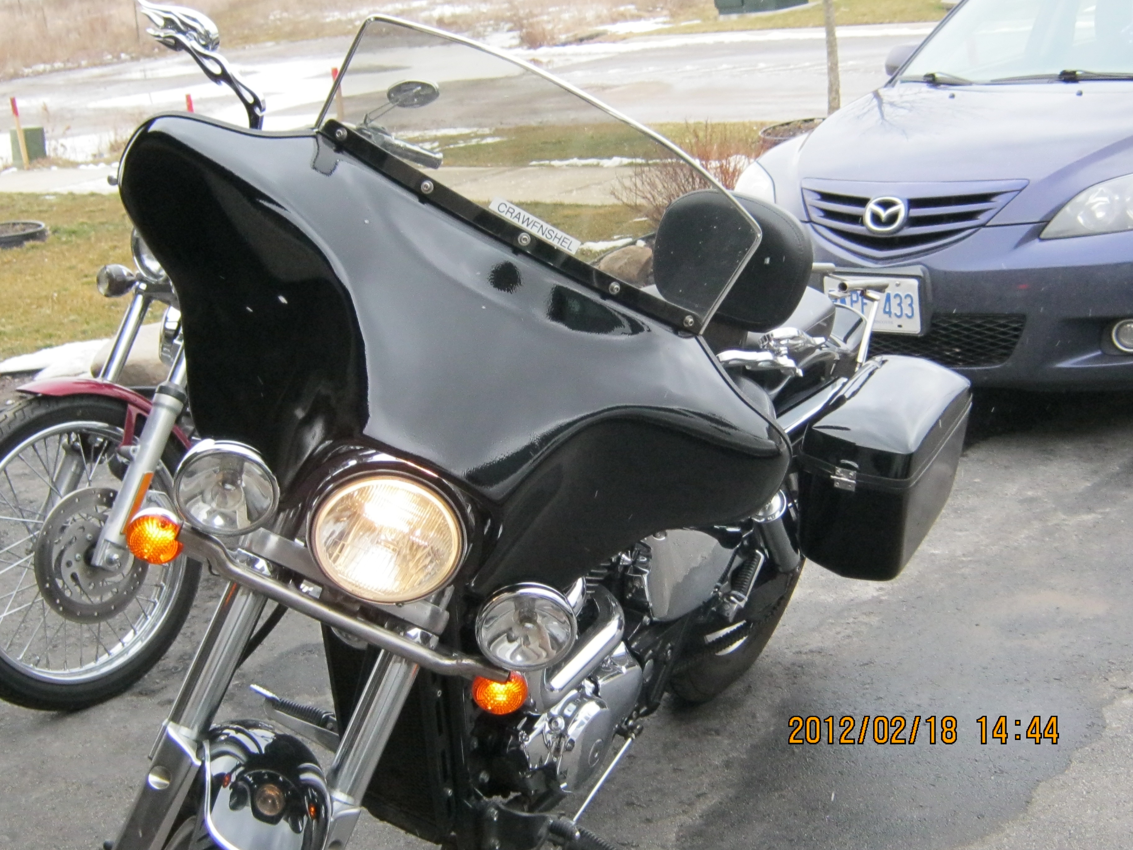 update for those who may care,..suspension assembly went smoothly with heat fit of inner race and torsion bits into sand blasted housings,..hub tinmkins were re-packed as it was in good repair,..my tub body's paint is completed and clear coated, awaiting pick-up at a friends in Quebec( 7 hrs away), as the fairing and saddle bags are here and on the bike, I assume it looks just as great,..the new windshield should be in this week, as it left Florida on Wednesday, and a trip planed tomorrow to the local upolstery shop will see the seat and roof tears repaired ,..our" little hot-rod" ( daughter) is going to have a fresh, new chair this season, Easter weekend in Myrtle Beach should be a good way to test things out , we can't wait,...cheers crawf.