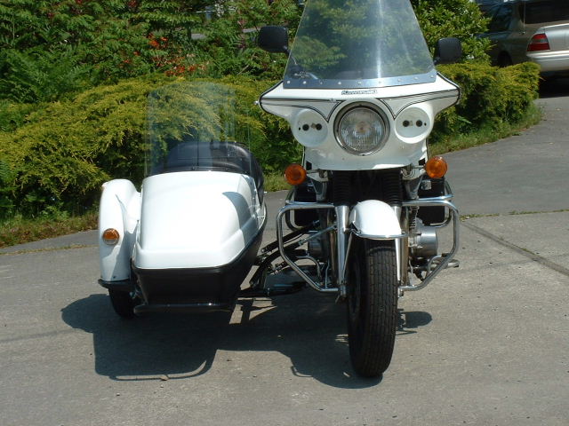 This KZ1000 Police is right under 600lbs wet. I can't imagine I couldn't fab up a strong enough frame and axle combo to handle the Velorex body. I just like the Velorex look and that white on white rig in Lonnies photo REALLY catches my eye. Heck......that's exactly what my bike looks like.