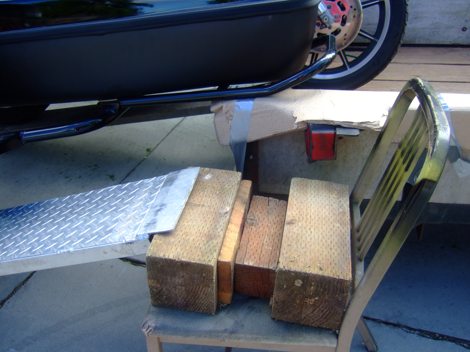 Trailer just a tad too narrow for the rig. Didn't want to scratch it up so we Jerry rigged it for clearance.