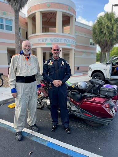 The first of two end of ride witnesses, the Chief of Police, Key West, FL. Note the four gold stars on his collar.
