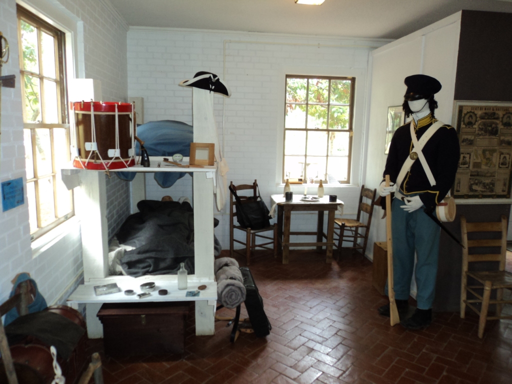 Now let me state here that if anyone is expecting a standing fort, complete with barricaded walls, watch towers, a large swinging gate made of logs, and multiple original or restored buildings, then you’ll be deeply disappointed in visiting Fort Jesup State Historic Site. The site is made up of a large reconstructed barracks building that serves as the sites museum and information center. The only original and still standing building is one of about 6 kitchens that was situated behind one of the enlisted barracks. The large tract of land that Fort Jesup occupied was sold off after it was abandoned by the Army and so the original buildings went the way of building materials for settlers and locals who needed such things to build on their land. The 6 original enlisted barracks and their kitchens were bought by one man who began a school at this site. These buildings survived for years as such until, sadly, they burned down from a fire (all except the one kitchen). Today, visitors can walk the grounds and see where foundations were for some buildings and view old farm implements or items used in the fort’s bustling time period. The brochure for Fort Jesup also listed up-coming events that are sponsored at the site, to include period re-enactors who demonstrate such things as life of a soldier, a woman/wife on post, and other interpretive guided tours. Fort Jesup was occupied from the 1820’s to the 1840’s and served as the primary post for forces heading west into the newly annexed Texas. Prior to serving as a jumping-off spot for west bound troops, it was built to defend the then western frontier of our Louisiana Purchase from the Spanish. For a history-buff like me, just listening to the park manager and viewing the museum and model diorama of the original fort was all I needed to imagine the grounds as they’d been almost two hundred years ago.