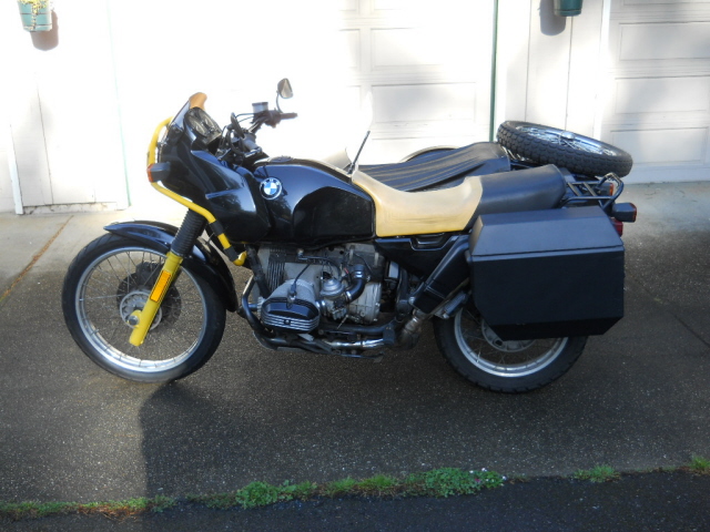 My gosh time flies! Here it is spring time 2014, nearly five years later and that darned oil leak in the Aprilia is still plaguing me. I admit I haven't been very attentive about fixing this problem but recently I got the yearn to do a bit more traveling on the hack. I think it may have been triggered by Mac, my Iowa buddy. He recently wrote that he was thinking about doing a longish type of ride next year to celebrate his 80th and as such he'd begun the search for a BMW GS to use for a tug. That got me all excited so I let some of my local buds know about it and before long in came a link to the Seattle Craig's List for a '92 Bumblebee already sporting a Ural chair. I sent it along to Mac but he's looking for a more modern GS and decided to pass on this one. I'd fully intended to fix the Aprilia - still do - but that cool looking Bumblebee kept calling out. Finally I caved in and contacted the seller to see if he might be interested in trades and the next thing I knew the Bumblebee was alive and living with me in Bandon.